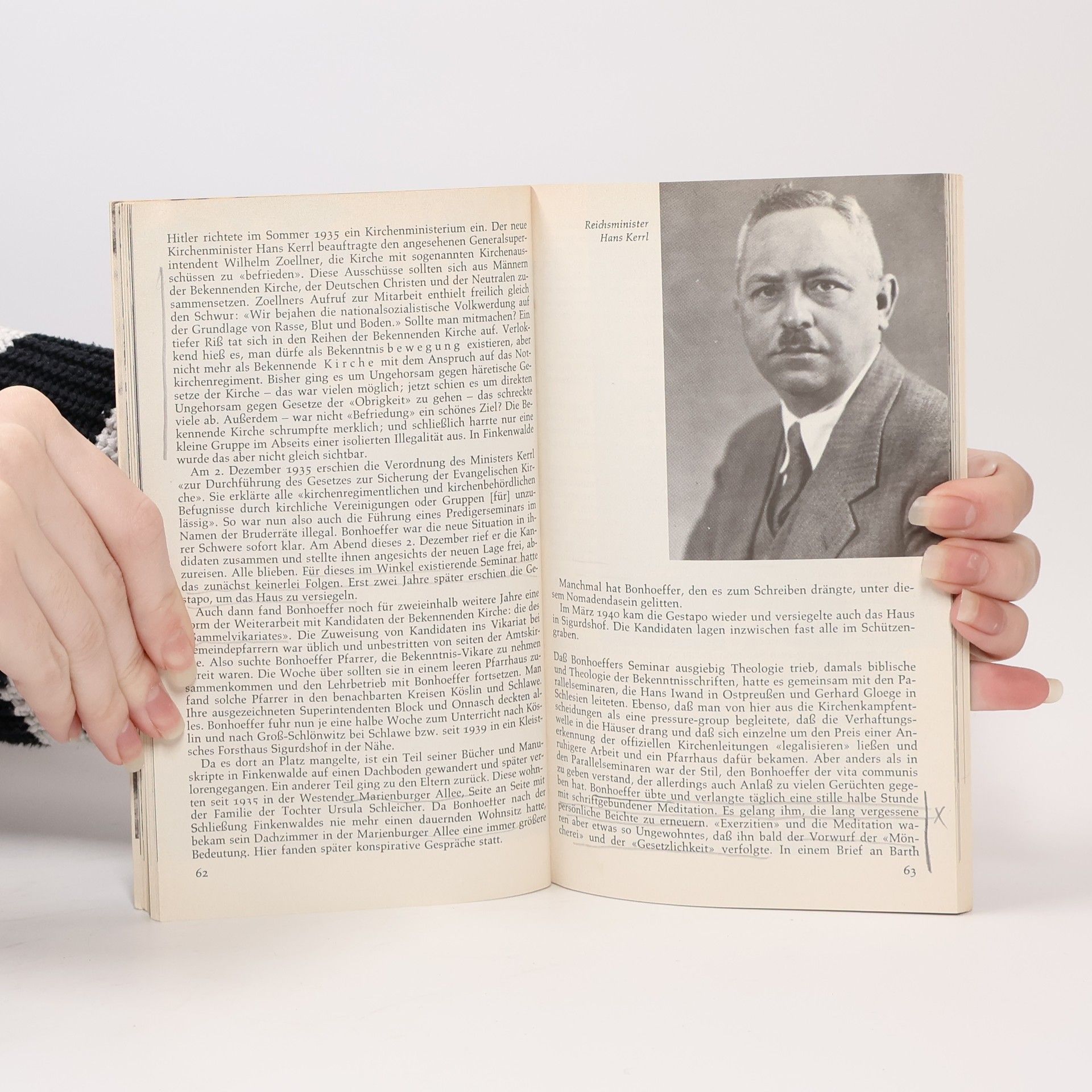 Eberhard Bethge, geboren 1909, evangelischer Pfarrer, Biograph Bonhoeffers und Herausgeber seiner nachgelassenen Werke. Bethge lernte Bonhoeffer kennen, als er 1935 in das von ihm errichtete Predigerseminar der Bekennenden Kirche in Finkenwalde eintrat und wurde sein Mitarbeiter, bis 1940 die Gestapo die Arbeit unterband. Inzwischen wuchs eine enge Freundschaft bis zu Bonhoeffers Ermordung 1945. Außerdem kam es zu einer familiären Verbindung durch die Heirat mit seiner Nichte Renate Schleicher, die an den Bonhoeffer-Arbeiten stark beteiligt ist, so auch an dieser Monographie; das erste Kapitel z. B. stammt aus ihrer Feder. Befreit aus Gestapohaft durch die einrückenden Sowjets, arbeitete Bethge 1945 als Assistent bei Bischof Dibelius und seit 1946 als Studentenpfarrer in Berlin. 1953 bis 1961 betreute er deutsche Auslandsgemeinden in London und verbrachte Perioden als Lecturer u. a. in Harvard, New York und Chicago. Von 1961 bis 1976 leitete er das Pastoralkolleg der Evangelischen Rheinischen Landeskirche in Rengsdorf und war von 1967 bis 1976 Mitglied der Rheinischen Kirchenleitung. Seit 1976 lebte er im Ruhestand nahe Bonn, unterbrochen durch Gastprofessuren in den USA. Eberhard Bethge starb am 18. März 2000.