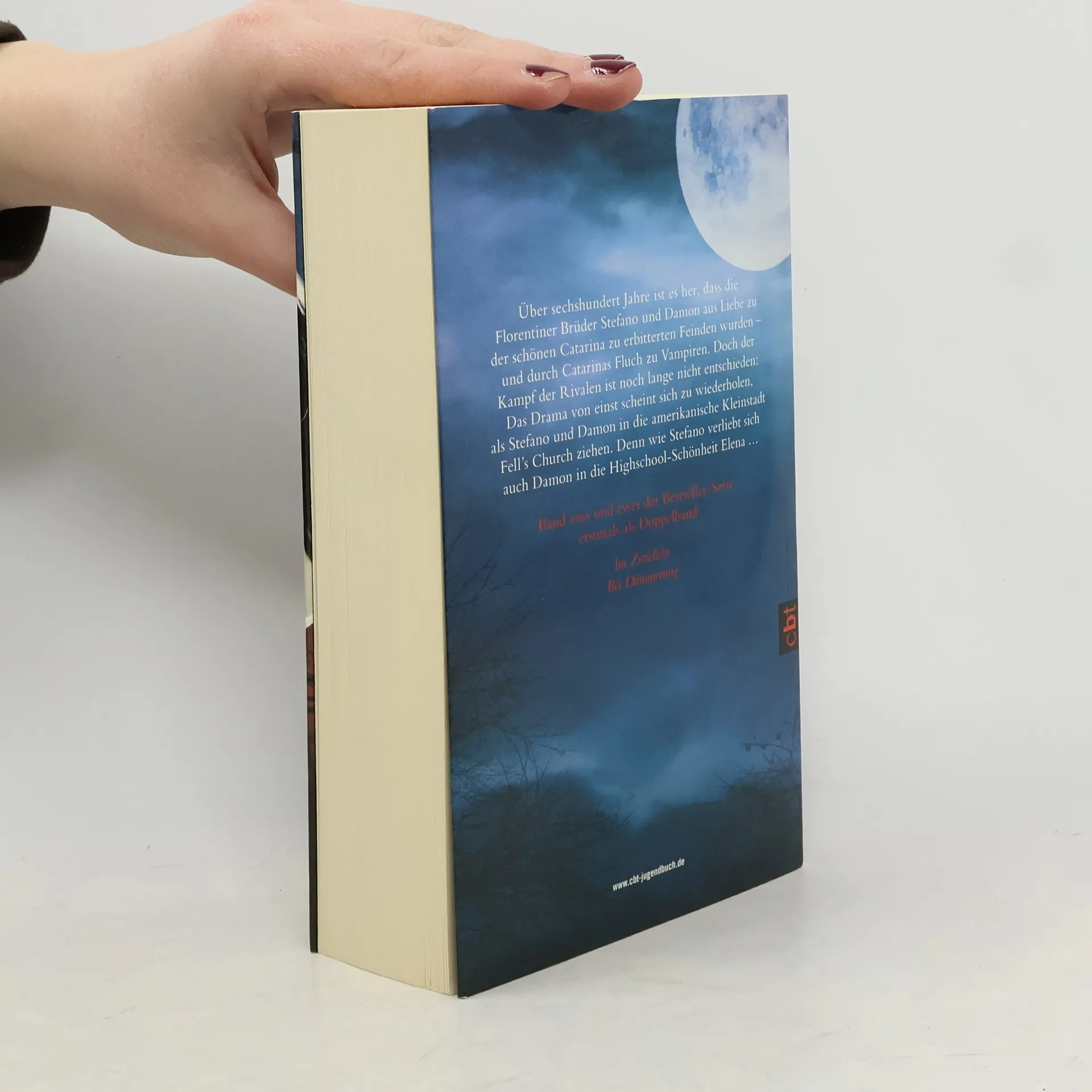 Sie sind blutdürstig, doch liebeshungrigAls Stefano in einer amerikanischen Kleinstadt der hübschen Elena begegnet, scheint sich die Geschichte von damals zu wiederholen. Denn wie Stefano verliebt sich auch Damon in das Mädchen. Doch während Stefano verzweifelt versucht, seinen Drang nach ihrem Blut zu beherrschen, legt Damon es genau darauf an: Skrupellos lockt er Elena zu sich, um von ihrem Blut zu trinken...