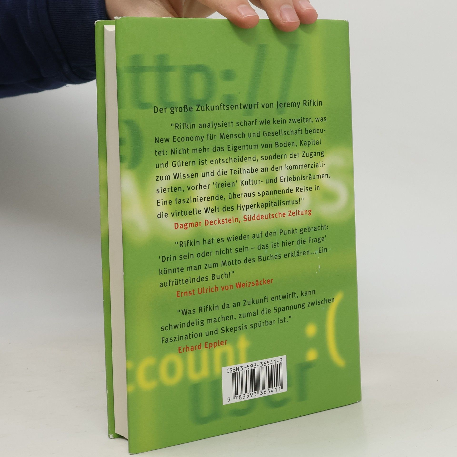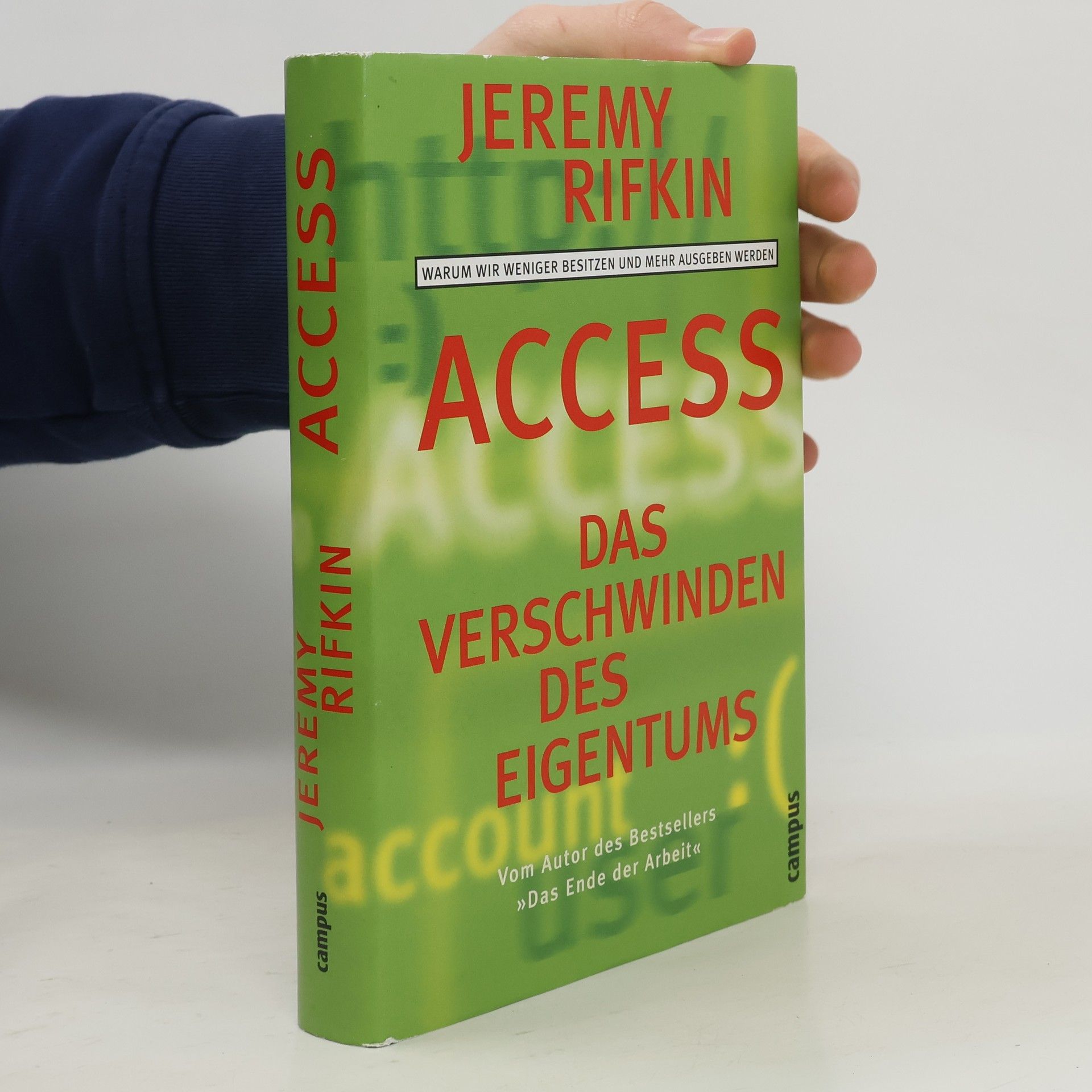 Der Internetboom und die rasante Börsenentwicklung lassen keinen Zweifel zu: Das Industriezeitalter ist endgültig vorüber. Der Kapitalismus ändert sich radikal - und mit ihm unser ganzes Leben. Die Formel des kommenden Zeitalters lautet: Access, Zugriff, Zugang. Der rasche Zugriff auf Ideen, Güter und Dienstleistungen zählt heute bereits mehr als dauerhafter und schwerfälliger Besitz. Das bleibt nicht ohne Folgen für das gesellschaftliche Zusammenleben. Jeremy Rifkin zeigt in seiner brillanten Analyse, wie sich im neuen Access-Zeitalter Alltagsleben, Arbeit, Freizeit und Konsumverhalten radikal verändern. Er führt uns eine Welt vor, in der möglicherweise alles, was wir brauchen, nur noch als bezahlter Service erhältlich ist. Rifkin warnt: Wenn wir der Ökonomie gänzlich das Feld überlassen, sind die Grundlagen unserer Gesellschaft in Gefahr.