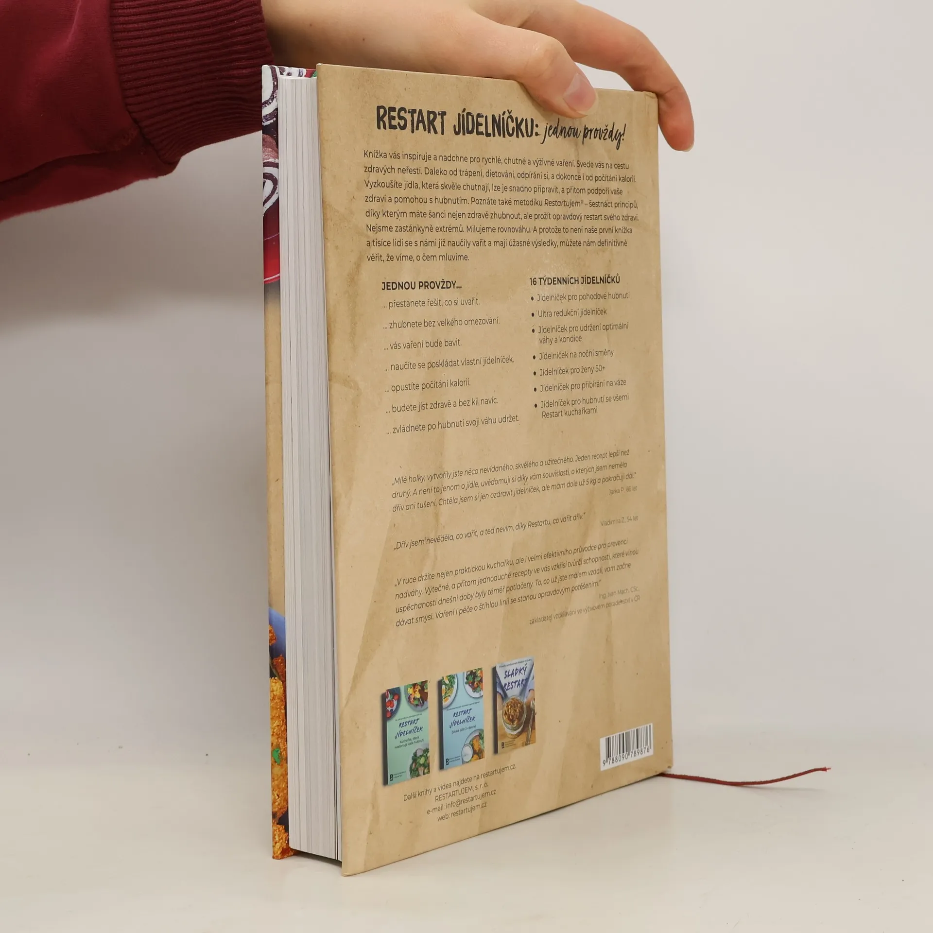 Získej knihu plnou zdravých a chutných receptů. Udělej Restart jídelníčku jednou provždy. Odhal tajemství úspěšného hubnutí bez zázračných pilulek. Efektivně a jednoduše. Začnete malými krůčky. Dejte prostor svému tělu. Nastartujete tělo. Žijeme, co učíme. Už žádné diety.