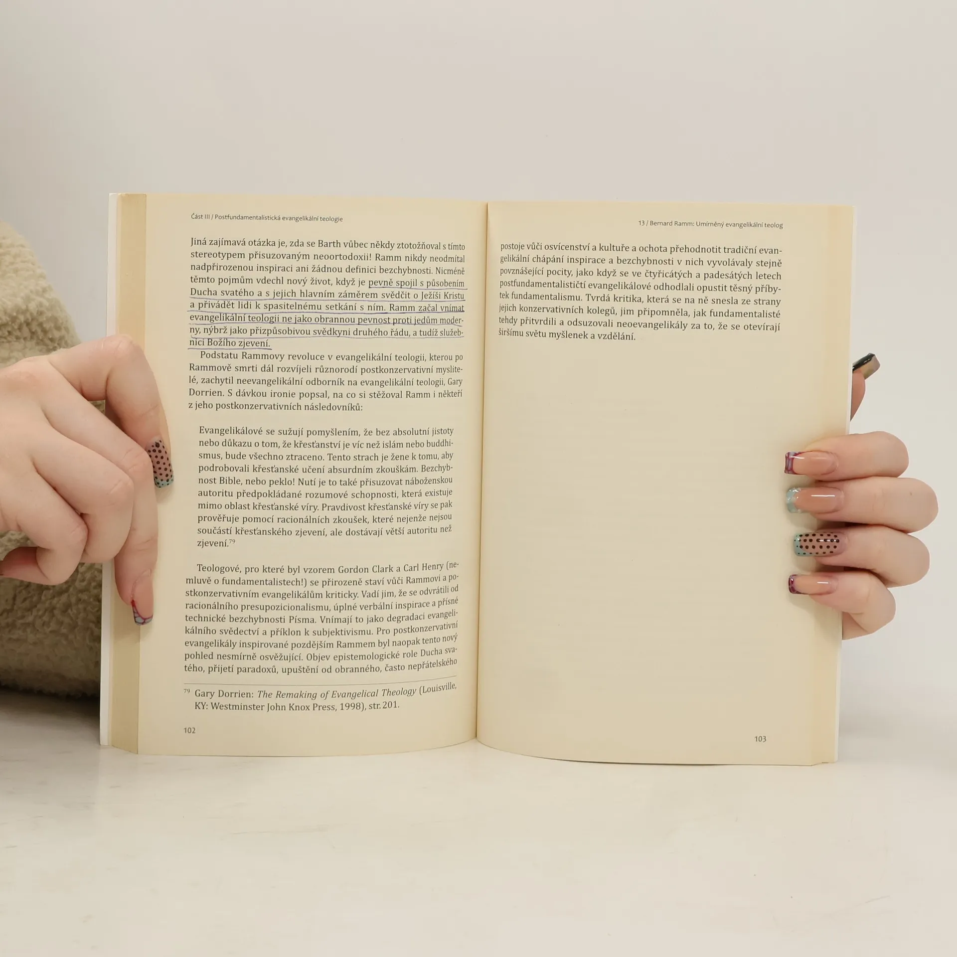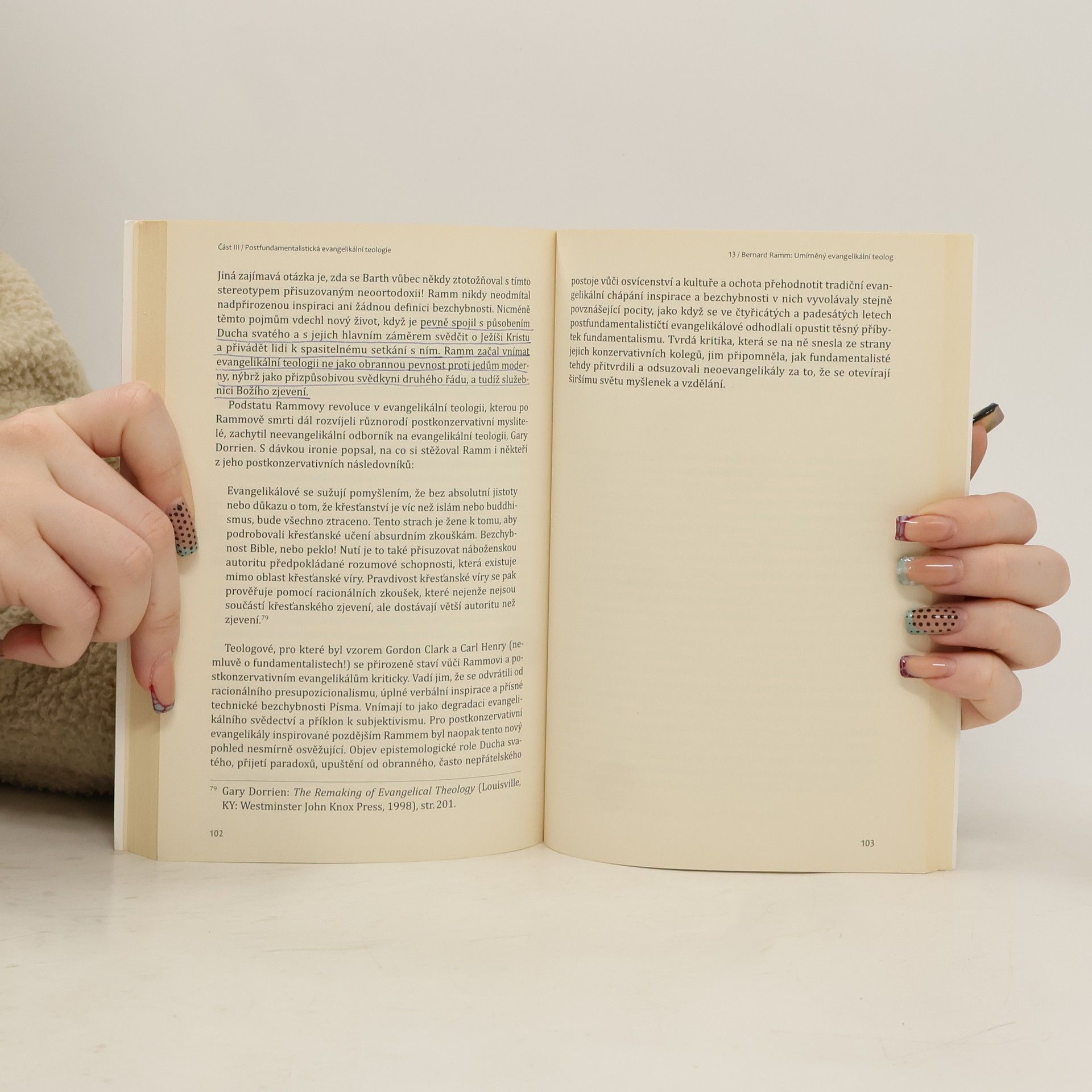 Roger E. Olson jako představitel post-konzervativního amerického evangelikalismu prezentuje evangelikální teologii jako příběh hnutí, které má své historické kořeny i milníky, ale zároveň napětí i zápasy o klíčové otázky ortodoxie a křesťanské identity. S otevřeností popisuje vnitřní dialog v rámci evangelikalismu mezi těmi, kdo chtějí jasně definovat jeho doktrinální hranice a "velkorysou ortodoxií" mnoha současných evangelikálních myslitelů. Olson představuje širší pohled na evangelikální teologii, která přiznává, že neexistuje něco jako "evangelikální magisterium", ale sada centrálních přesvědčení, které tvoří gravitační pole evangelikalismu, a umožňují mu zůstat teologicky konzervativním a konzistentním hnutím, ale také vést tvořivý dialog uvnitř i navenek. Historický i sociologický pohled na evangelikální hnutí v této knize je dobrým úvodem pro kohokoli, kdo se chce blíže seznámit s vývojem klíčových důrazů evangelikálního hnutí.