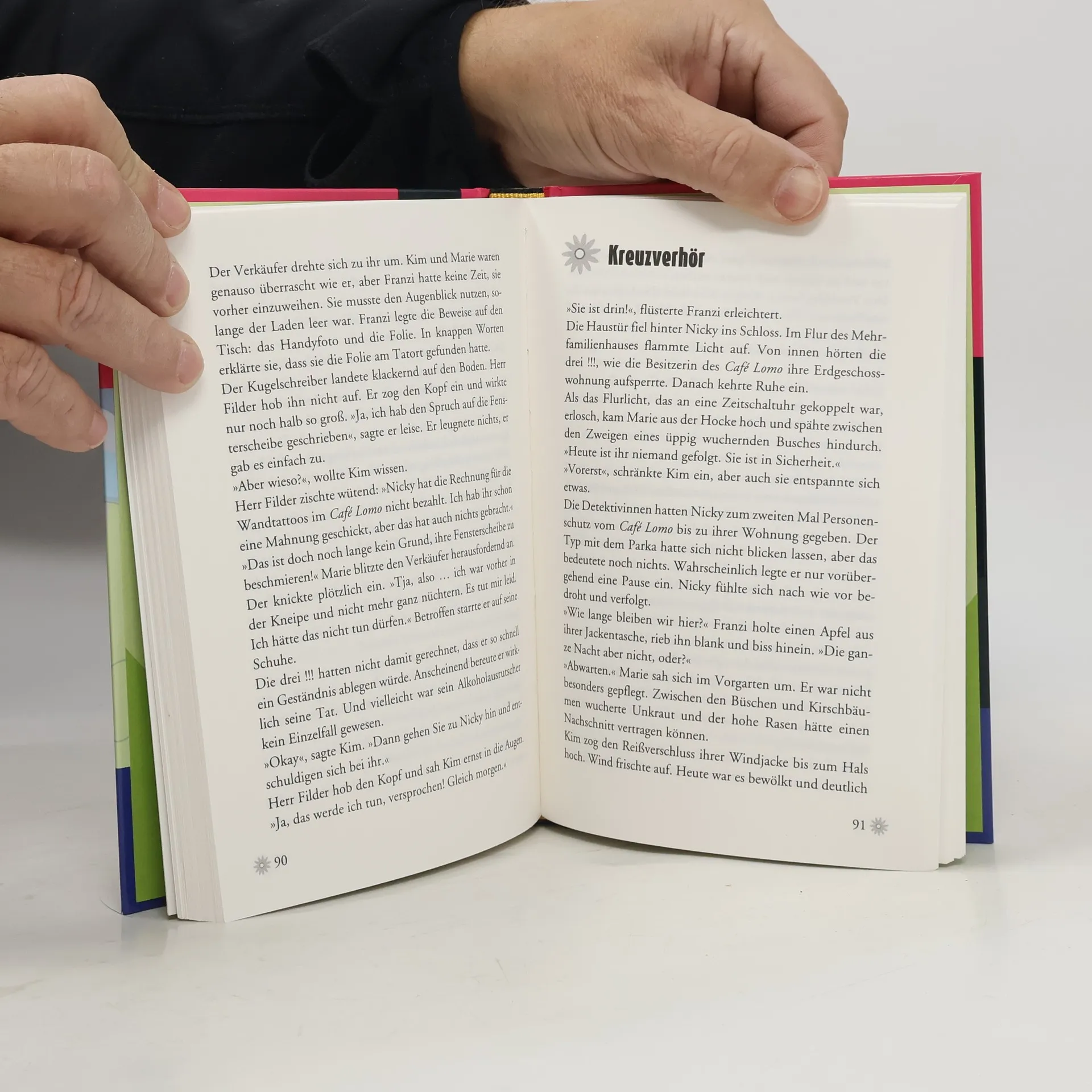 Kim, Franziska und Marie sind „Die drei !!!“. Mutig und clever ermitteln die drei Mädchen und sind jedem Fall gewachsen. Das Lieblingscafé von Marie, Kim und Franzi ist in Gefahr! Die neue Inhaberin des Lomo wird erpresst. Ehrensache, dass die drei !!! ihr ganzes detektivisches Können einbringen, um den Fall aufzuklären. Doch die anonymen Attacken auf das Café und seine Besitzerin werden immer schlimmer. Auf einmal wimmelt es nur so vor Verdächtigen und die Freundinnen müssen einen klaren Kopf bewahren. Ob sie das Café vor der Schließung retten können? Neben der spannenden Detektivarbeit müssen Kim, Franziska und Marie auch immer wieder das Abenteuer „Freundschaft“ bestehen. Es ist nämlich gar nicht so leicht, drei völlig verschiedene Meinungen unter einen Hut zu bringen. Mutig und clever stellen sich „Die drei !!!“ der Herausforderung und sind gemeinsam ein unschlagbares Team!