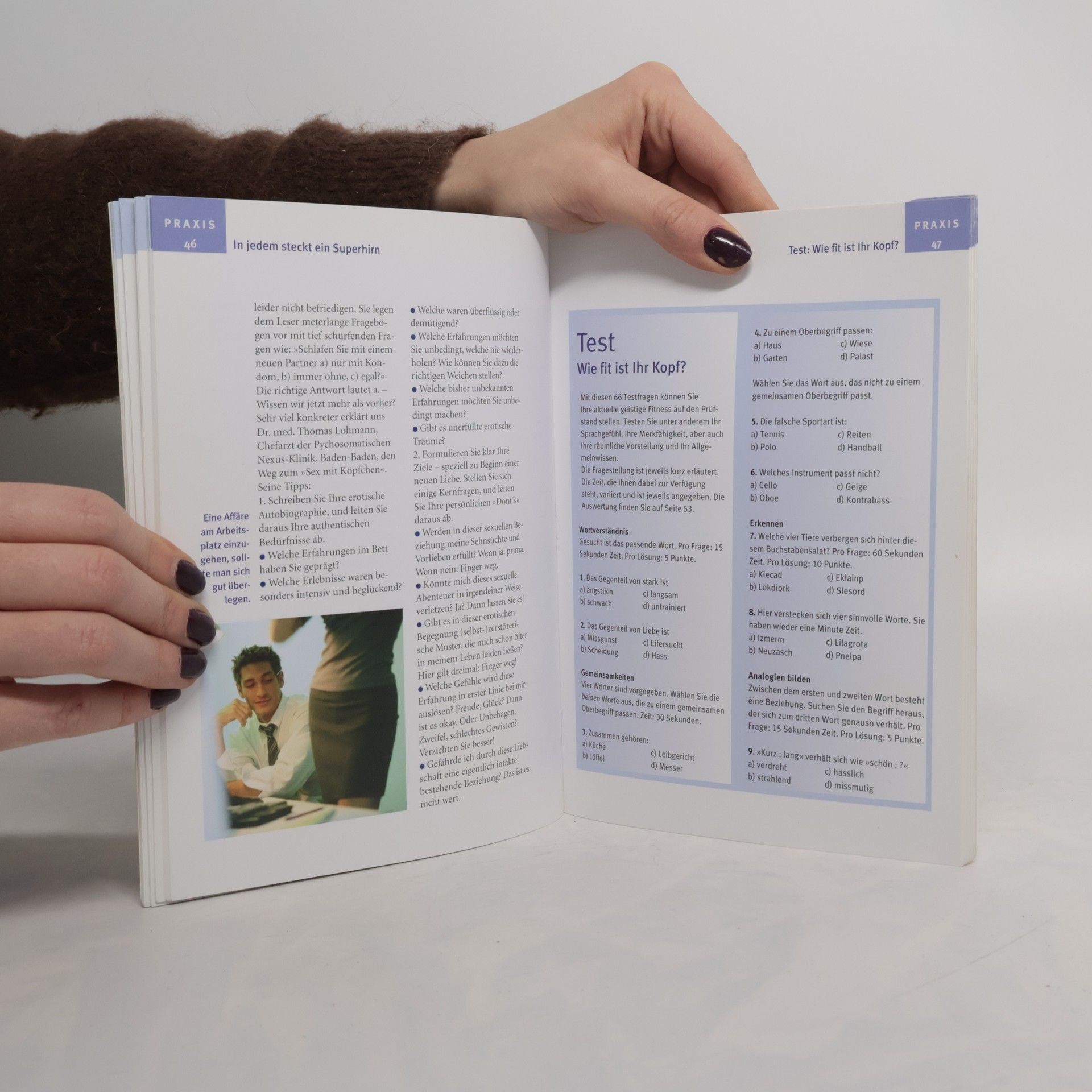 Geistige Power ist heute begehrter denn je. Aber wie geht das - geistig topfit, intellektuell leistungsfähig und kreativ zu sein? Auf diese Frage gibt das Buch Antwort. Es beschreibt die verblüffenden neuen Erkenntnisse über Funktion und Fähigkeiten des Gehirns und zeigt, wie man mit Brainfood, ausreichend Bewegung und den richtigen Mentaltechniken den Computer im Kopf fit macht. Die zahlreichen Test und "Kopfrezepte" bringen das Gedächtnis mühelos in Schwung. Und sollte das Gehirn einmal mit Reizen überflutet sein, bietet das Buch hilfreiche Entspannungsmethoden, mit denen man seinen Kopf wieder frei bekommt.