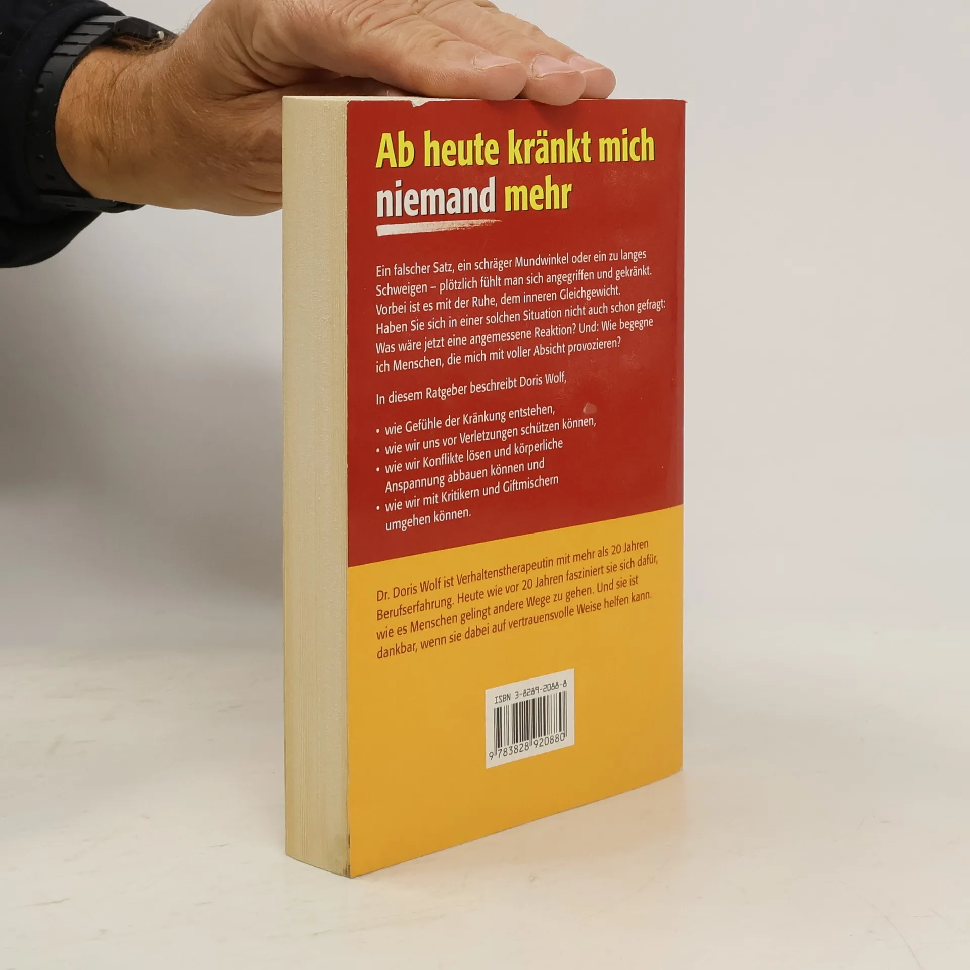 Kennen Sie Ihren wunden Punkt? In nur wenigen Sekunden kann ein Satz oder eine Geste das Selbstwertgefühl erschüttern. Gekränktheit stellt uns als Person in Frage und führt oft zu Rückzug oder Überreaktionen. Dr. Doris Wolf, Psychotherapeutin, erläutert in ihrem Ratgeber, warum bestimmte Dinge uns besonders treffen und bietet praktische Tipps, um Gedanken und Gefühle positiv zu beeinflussen. Sie behandelt Fragen wie: Bin ich zu empfindlich? Wie entsteht Gekränktheit und wie kann ich mich davor schützen? Ein ausführlicher Fragenkatalog zur Selbstanalyse hilft, persönliche Verwundbarkeiten zu erkennen. Praktische Übungen unterstützen dabei, typische Schockreaktionen und negative Gedanken zu überwinden. Zudem gibt es wirksame Strategien im Umgang mit schwierigen Menschen und Beleidigungen. Dr. Wolf zeigt, wie man Gefühle kontrolliert, besser mit Kritik umgeht und Konflikte löst. Ihre effektiven Selbsthilfetipps fördern Gelassenheit und Selbstbewusstsein. Egal, ob ungewollte Beleidigungen oder gezielte Kritik: Wir haben die Kontrolle über unsere Emotionen und Reaktionen. Schritt für Schritt lernen Sie, selbstzerstörerische Gedanken zu stoppen, Ihre Selbstachtung zu stärken und Ablehnung sowie Kritik gelassener zu begegnen.