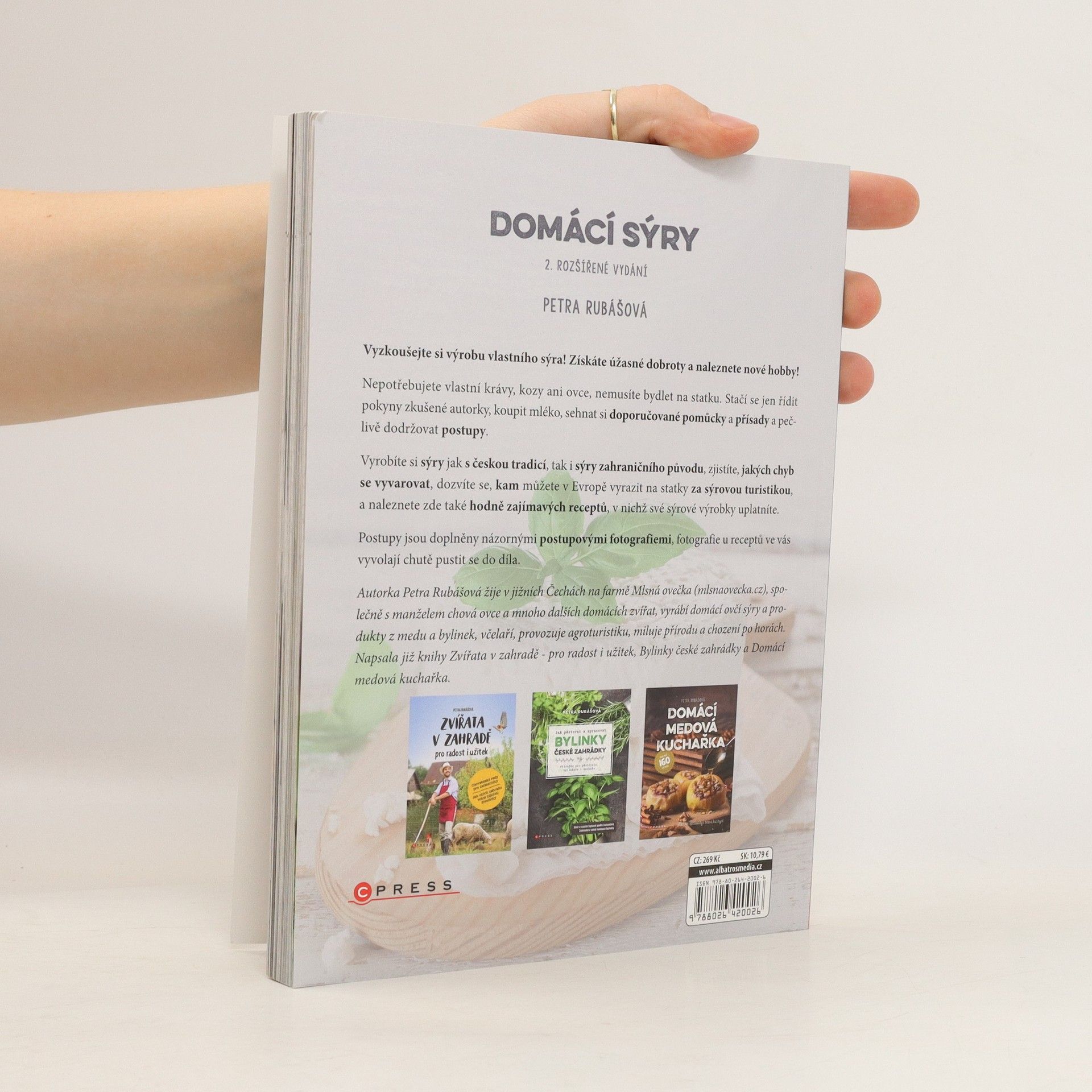 Vyzkoušejte si výrobu vlastního sýra! Získáte úžasné dobroty a naleznete nové hobby! Nepotřebujete vlastní krávy, kozy ani ovce, nemusíte bydlet na statku. Stačí se jen řídit pokyny zkušené autorky, koupit mléko, sehnat si doporučované pomůcky a přísady a pečlivě dodržovat postupy. Vyrobíte si sýry jak s českou tradicí, tak i sýry zahraničního původu, zjistíte, jakých chyb se vyvarovat, dozvíte se, kam můžete v Evropě vyrazit na statky za sýrovou turistikou, a naleznete zde také hodně zajímavých receptů, v nichž své sýrové výrobky uplatníte. Postupy jsou doplněny názornými postupovými fotografiemi, fotografie u receptů ve vás vyvolají chutě pustit se do díla. Autorka Petra Rubášová žije v jižních Čechách na farmě Mlsná ovečka (mlsnaovecka.cz), společně s manželem chová ovce a mnoho dalších domácích zvířat, vyrábí domácí ovčí sýry a produkty z medu a bylinek, včelaří, provozuje agroturistiku, miluje přírodu a chození po horách. Napsala již knihy Zvířata v zahradě - pro radost i užitek, Bylinky české zahrádky a Domácí medová kuchařka. 2., rozšířené vydání.
