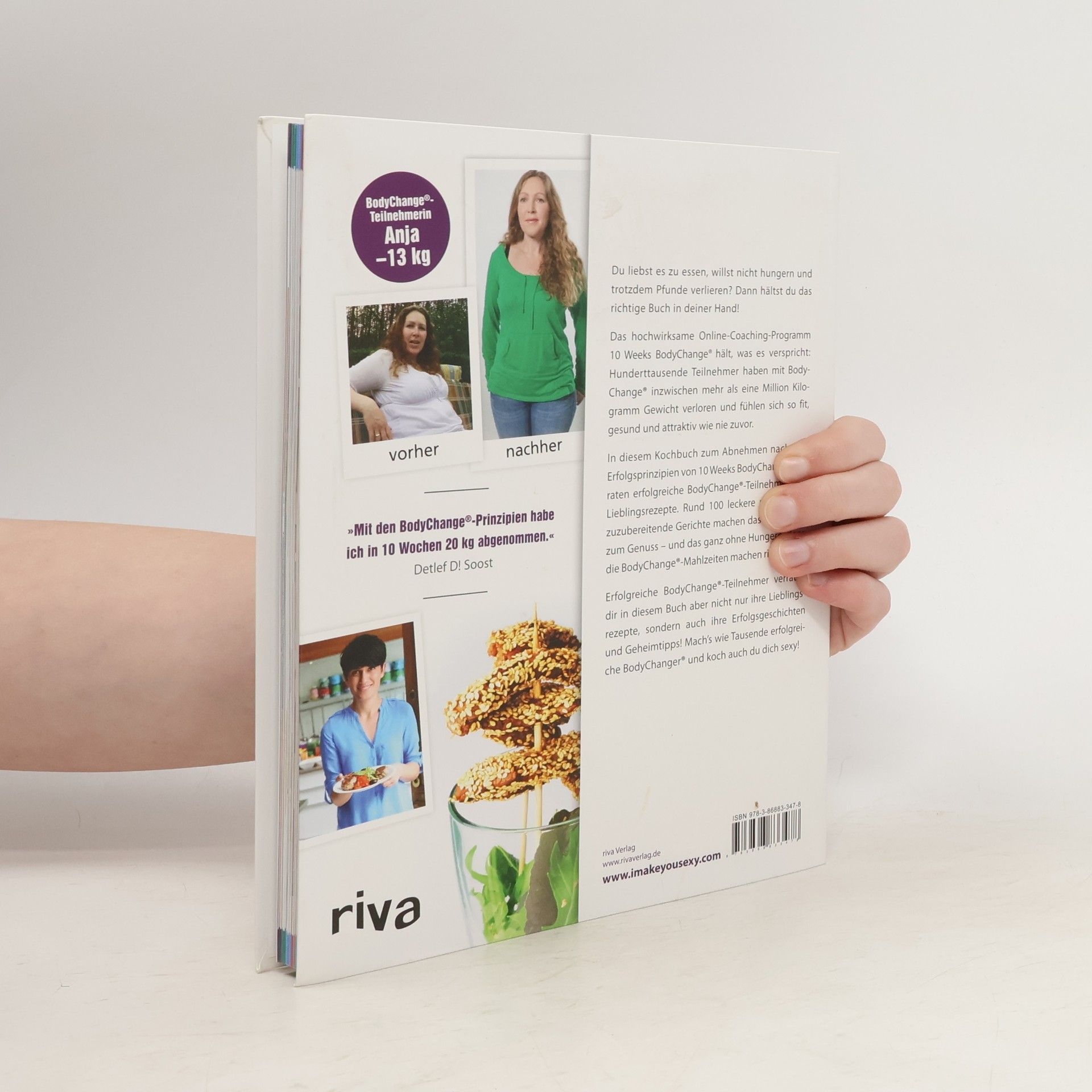 Der bekannte Choreograf und Motivationscoach Detlef D! Soost hatte selbst einmal einige Pfunde zu viel auf den Rippen. Um das zu ändern, entwickelte er gemeinsam mit einem Expertenteam ein Ernährungskonzept, mit dem er in 10 Wochen über 20 Kilogramm verloren und die Figur seines Lebens erlangt hat. Detlef D! Soosts hochwirksames Online-Coaching-Programm 10 Weeks BodyChange® hält, was es verspricht: Hunderttausende Teilnehmer haben mit BodyChange® inzwischen mehr als eine Million Kilogramm Gewicht verloren und fühlen sich so fit, gesund und attraktiv wie nie zuvor. In diesem Kochbuch zum Abnehmen nach den Erfolgsprinzipien von 10 Weeks BodyChange® verraten erfolgreiche BodyChange®-Teilnehmer ihre Lieblingsrezepte. Rund 100 leckere und einfach zuzubereitende Gerichte machen das Abnehmen zum Genuss – und das ganz ohne Hungern, denn die BodyChange®-Mahlzeiten machen richtig satt! Zahlreiche Erfolgsgeschichten und beeindruckende Vorhernachher-Fotos spornen die Leser dazu an, es den erfolgreichen BodyChangern® gleichzutun und sich fit, schlank und sexy zu kochen.