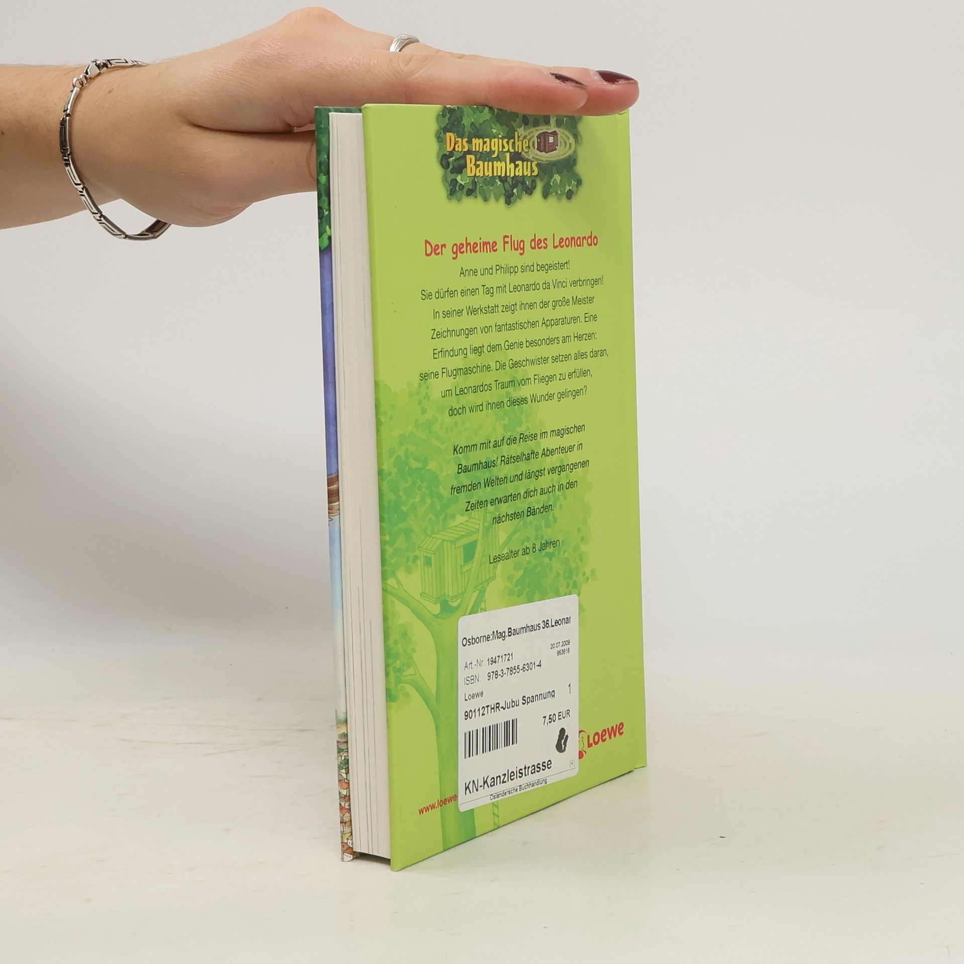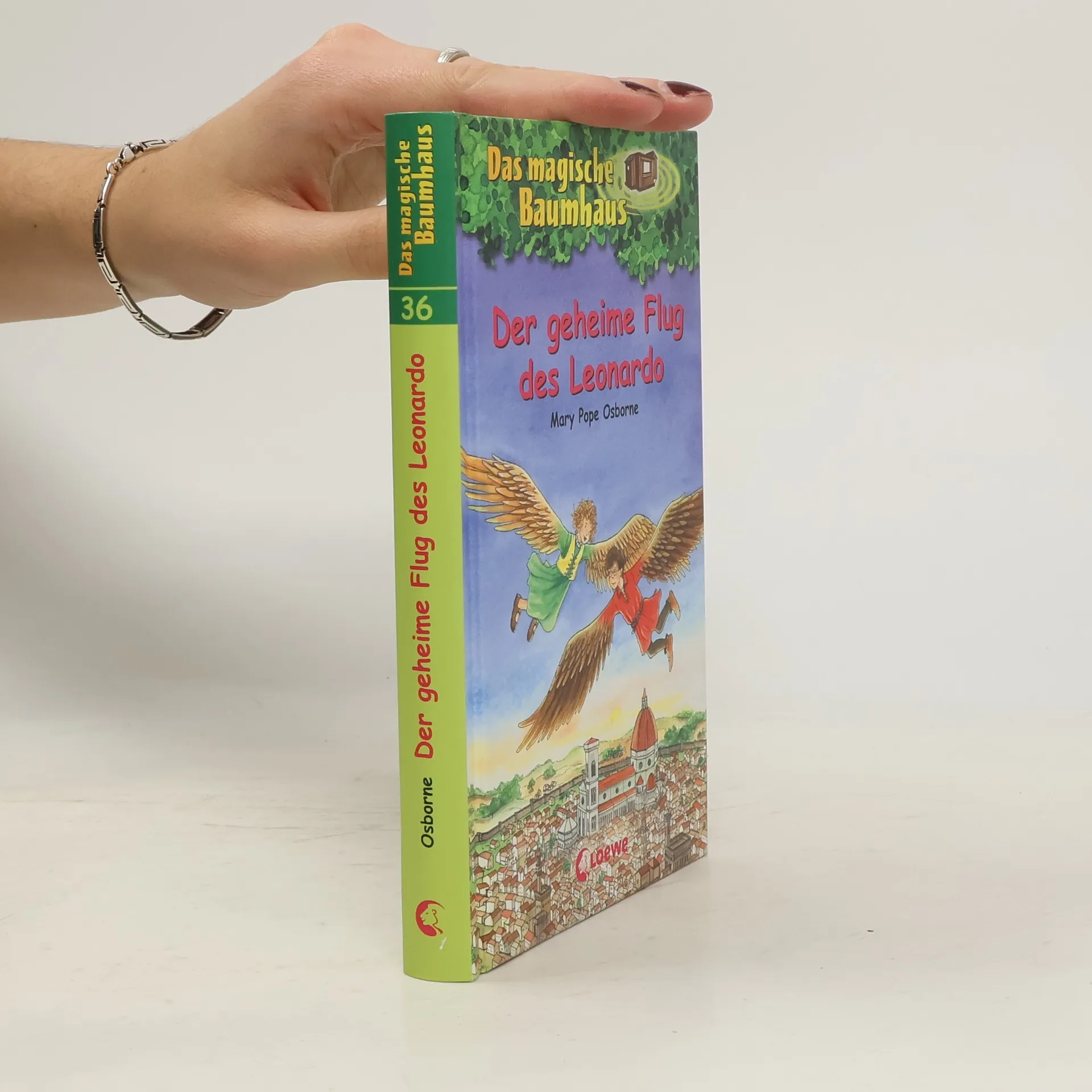 Das Buch ist bei deiner Buchhandlung vor Ort und bei vielen Online-Buchshops erhältlich! + Bücher, die Kinder gerne lesen wollen + Beliebte Themen: Abenteuer, Tiere und fremde Länder + Hochwertiges Hardcover + Mit vielen Illustrationen + Bereits über 10 Millionen verkaufte Bücher der Baumhaus-Reihe + Ausgewogenes Text-Bild-Verhältnis + Große Schrift + Kurze Kapitel + Anne und Philipp sind begeistert! Sie dürfen einen Tag mit Leonardo da Vinci verbringen! In seiner Werkstatt zeigt ihnen der große Meister Zeichnungen von fantastischen Apparaturen. Eine Erfindung liegt dem Genie besonders am Herzen: seine Flugmaschine. Die Geschwister setzen alles daran, um Leonardos Traum vom Fliegen zu erfüllen, doch wird ihnen dieses Wunder gelingen? Komm mit auf die Reise im magischen Baumhaus! Rätselhafte Abenteuer in fremden Welten und längst vergangenen Zeiten erwarten dich auch in den nächsten Bänden. Die beliebte Kinderbuch-Reihe von Bestsellerautorin Mary Pope Osborne! Die Geschwister Anne und Philipp reisen mit dem magischen Baumhaus durch die Zeit. Sie erleben spannende Abenteuer, entdecken ferne Länder und lernen viele berühmte Persönlichkeiten kennen.