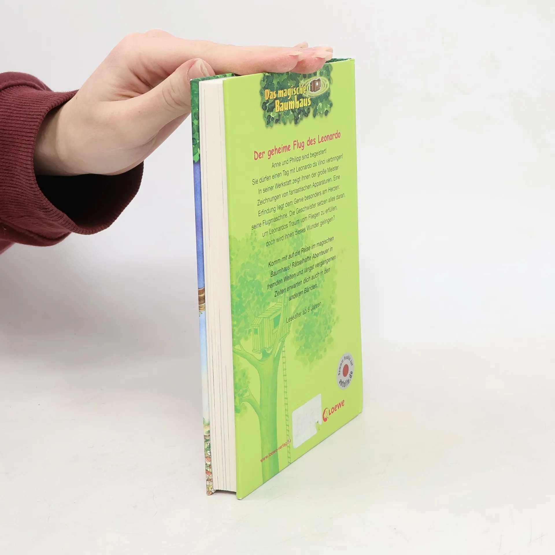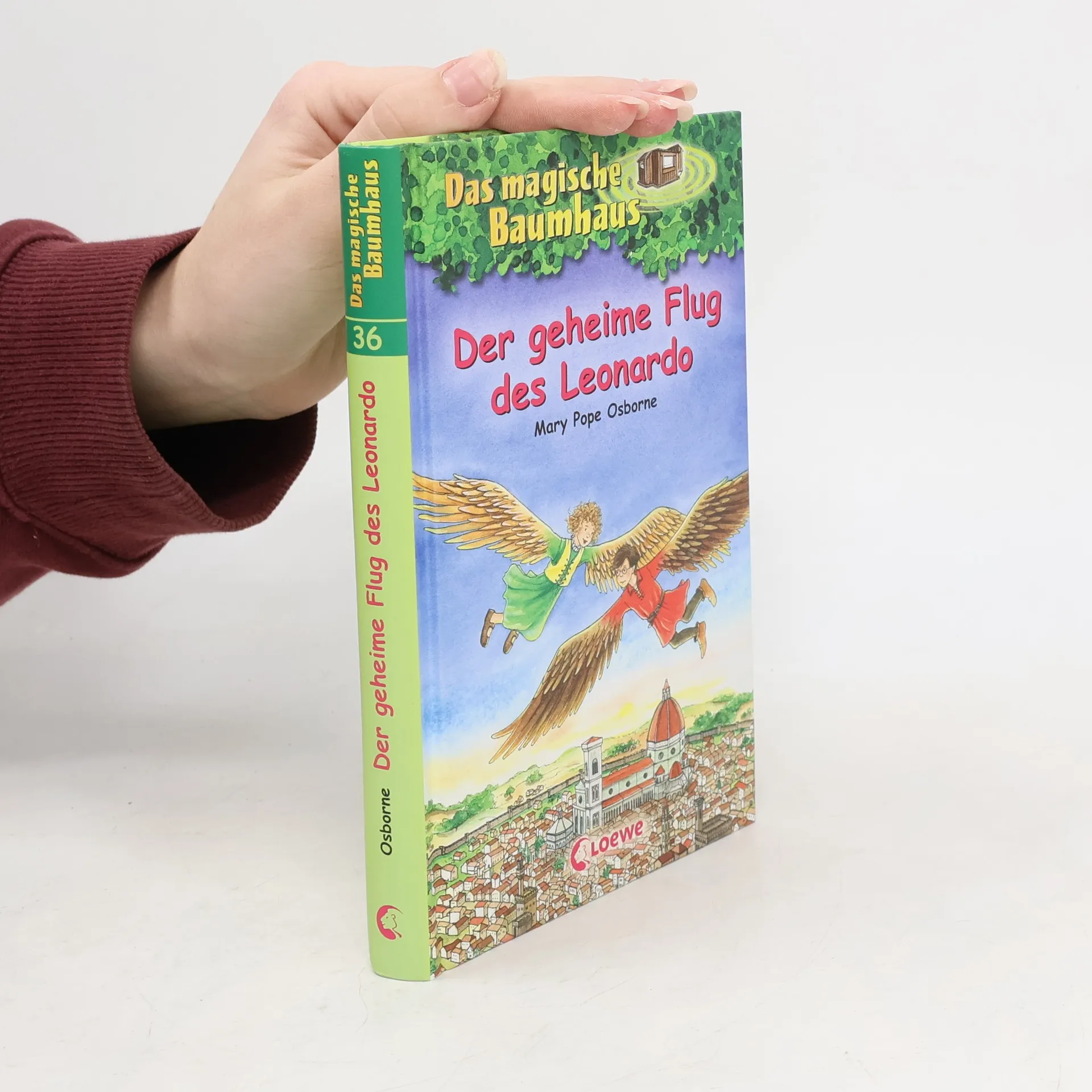 Das Buch ist bei deiner Buchhandlung vor Ort und bei vielen Online-Buchshops erhältlich! + Bücher, die Kinder gerne lesen wollen + Beliebte Themen: Abenteuer, Tiere und fremde Länder + Hochwertiges Hardcover + Mit vielen Illustrationen + Bereits über 10 Millionen verkaufte Bücher der Baumhaus-Reihe + Ausgewogenes Text-Bild-Verhältnis + Große Schrift + Kurze Kapitel + Anne und Philipp sind begeistert! Sie dürfen einen Tag mit Leonardo da Vinci verbringen! In seiner Werkstatt zeigt ihnen der große Meister Zeichnungen von fantastischen Apparaturen. Eine Erfindung liegt dem Genie besonders am Herzen: seine Flugmaschine. Die Geschwister setzen alles daran, um Leonardos Traum vom Fliegen zu erfüllen, doch wird ihnen dieses Wunder gelingen? Komm mit auf die Reise im magischen Baumhaus! Rätselhafte Abenteuer in fremden Welten und längst vergangenen Zeiten erwarten dich auch in den nächsten Bänden. Die beliebte Kinderbuch-Reihe von Bestsellerautorin Mary Pope Osborne! Die Geschwister Anne und Philipp reisen mit dem magischen Baumhaus durch die Zeit. Sie erleben spannende Abenteuer, entdecken ferne Länder und lernen viele berühmte Persönlichkeiten kennen.