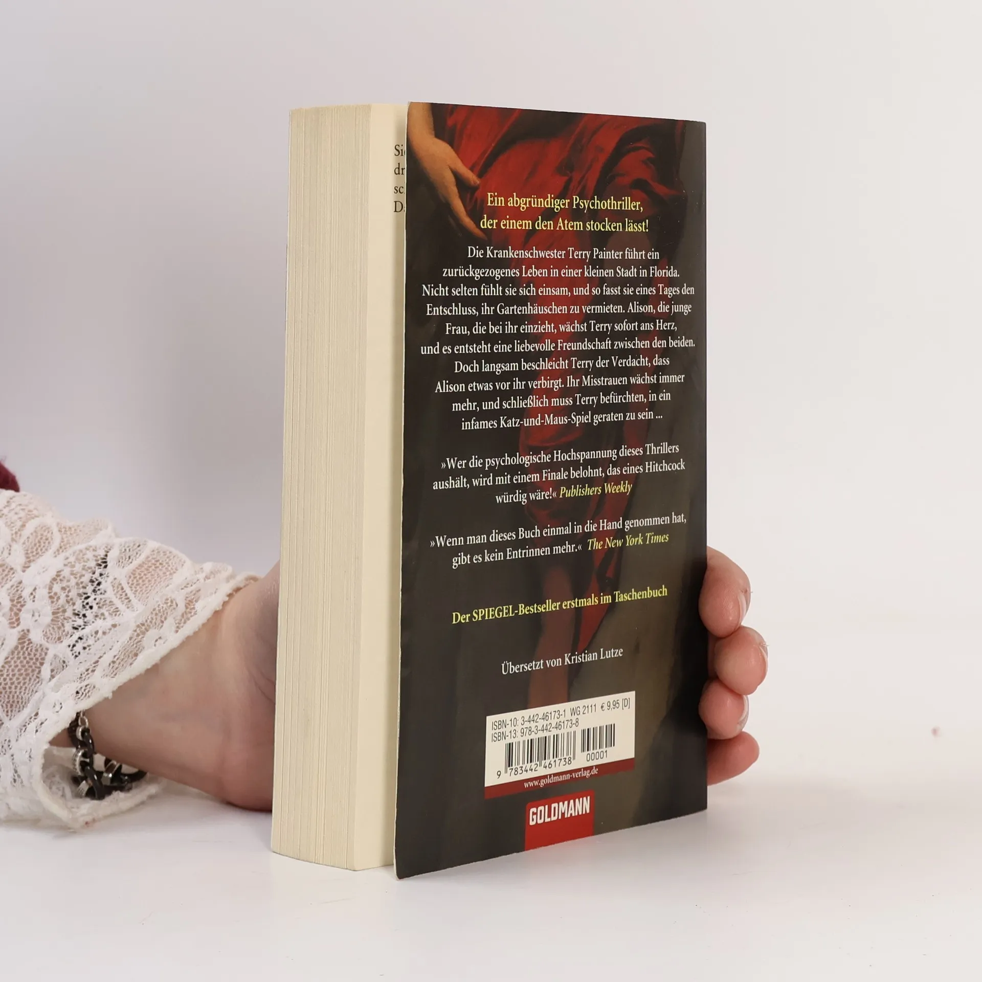 Der Tod hat zarte Hände … Die Krankenschwester Terry Painter führt ein zurückgezogenes Leben in einer kleinen Stadt in Florida. Nicht selten fühlt sie sich einsam, und so fasst sie eines Tages den Entschluss, ihr Gartenhäuschen zu vermieten. Alison, die junge Frau, die bei ihr einzieht, wächst Terry sofort ans Herz, und es entsteht eine liebevolle Freundschaft zwischen den beiden Frauen. Doch plötzlich beschleicht Terry der entsetzliche Verdacht, dass Alison etwas vor ihr verbirgt – und sie hat immer öfter das beklemmende Gefühl, in ein infames Katz-und-Maus-Spiel geraten zu sein, das ihr den Verstand zu rauben droht …