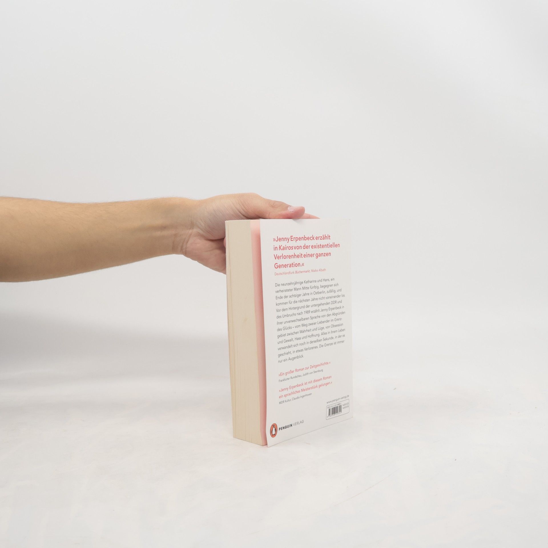 »Eine der größten lebenden Erzählerinnen, die (nicht nur) wir haben.« Andreas Platthaus, FAZ Die neunzehnjährige Katharina und Hans, ein verheirateter Mann Mitte fünfzig, begegnen sich Ende der achtziger Jahre in Ostberlin, zufällig, und kommen für die nächsten Jahre nicht voneinander los. Vor dem Hintergrund der untergehenden DDR und des Umbruchs nach 1989 erzählt Jenny Erpenbeck in ihrer unverwechselbaren Sprache von den Abgründen des Glücks – vom Weg zweier Liebender im Grenzgebiet zwischen Wahrheit und Lüge, von Obsession und Gewalt, Hass und Hoffnung. Alles in ihrem Leben verwandelt sich noch in derselben Sekunde, in der es geschieht, in etwas Verlorenes. Die Grenze ist immer nur ein Augenblick. »Erpenbecks beklemmende Entfaltung einer Amour fou, die mit dem Untergang des Staates synchronisiert wird, entwickelt einen beispiellosen Sog. Es ist ein großer, schöner und grausamer Liebesroman, der zu Recht ausgezeichnet worden ist.« Adam Soboczynski, Die Zeit »Jenny Erpenbeck erzählt in ›Kairos‹ von der existentiellen Verlorenheit einer ganzen Generation.« Maike Albath, Deutschlandfunk ›Büchermarkt‹ »Erpenbeck demonstriert in ›Kairos‹ ihre sprachlichen und literarischen Qualitäten.« Gerrit Bartels, Tagesspiegel