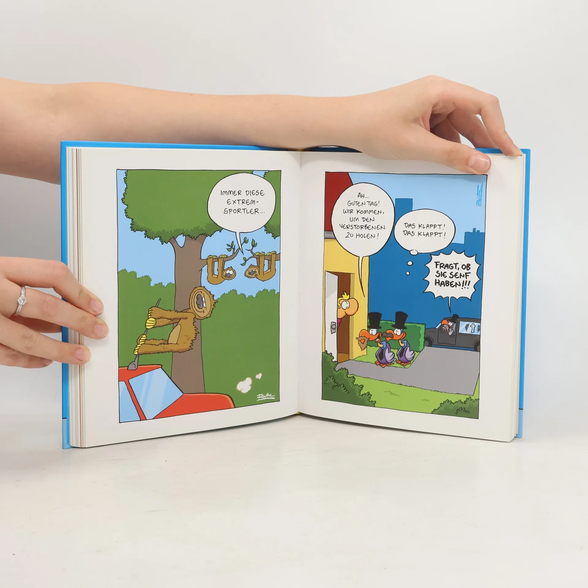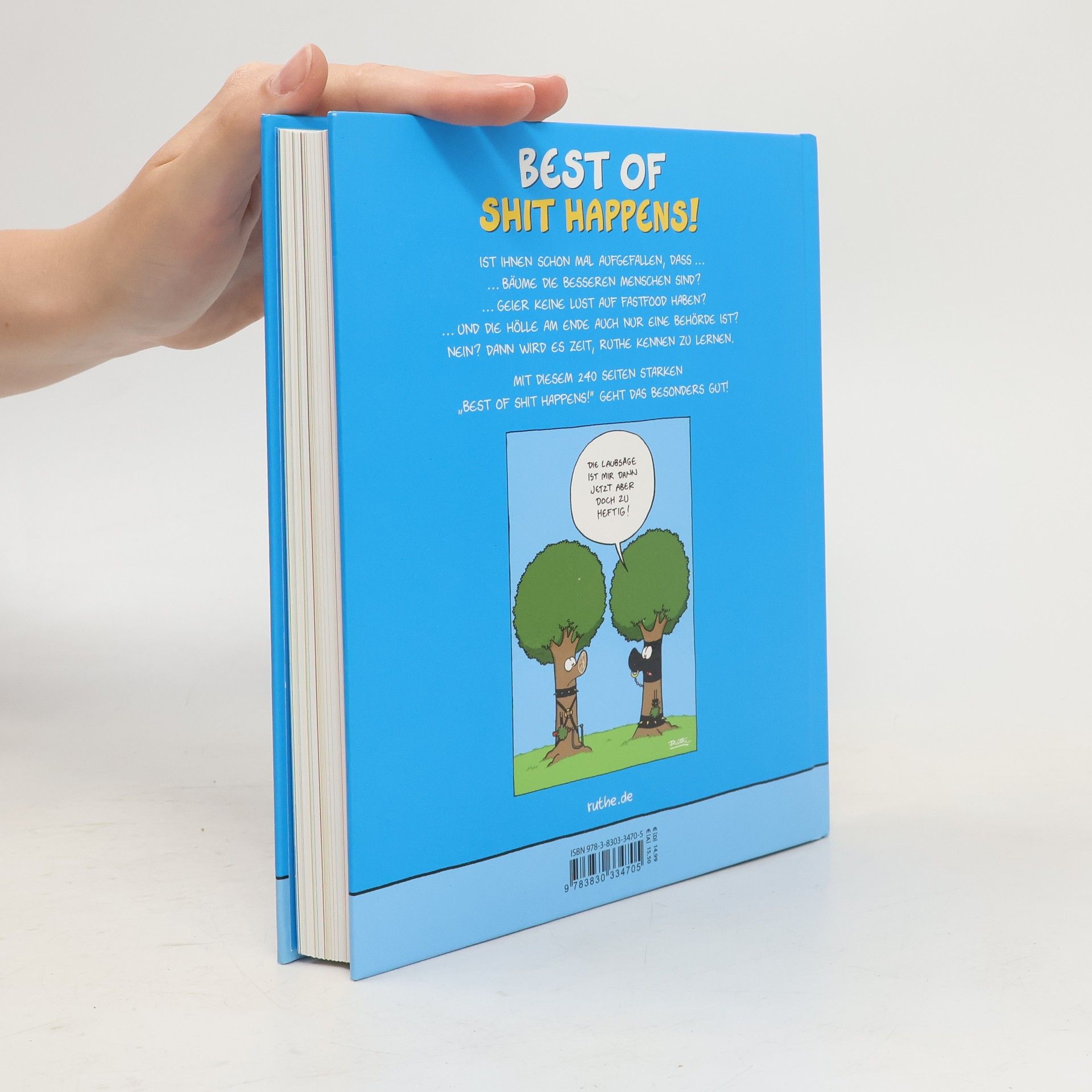 Die besten Cartoons aus den Shit happens!-Bänden von Ralph Ruthe - es sind so viele, dass „Best of Shit happens!“ ein 240 Seiten starkes Prachtbuch geworden ist, das in keiner Sammlung eines Ruthe-Fans fehlen darf. Und wer ein Ticket für seine Show im Herbst ergattert hat, der kann sich sogar von Ruthe eine Originalzeichnung hineinzeichnen lassen.