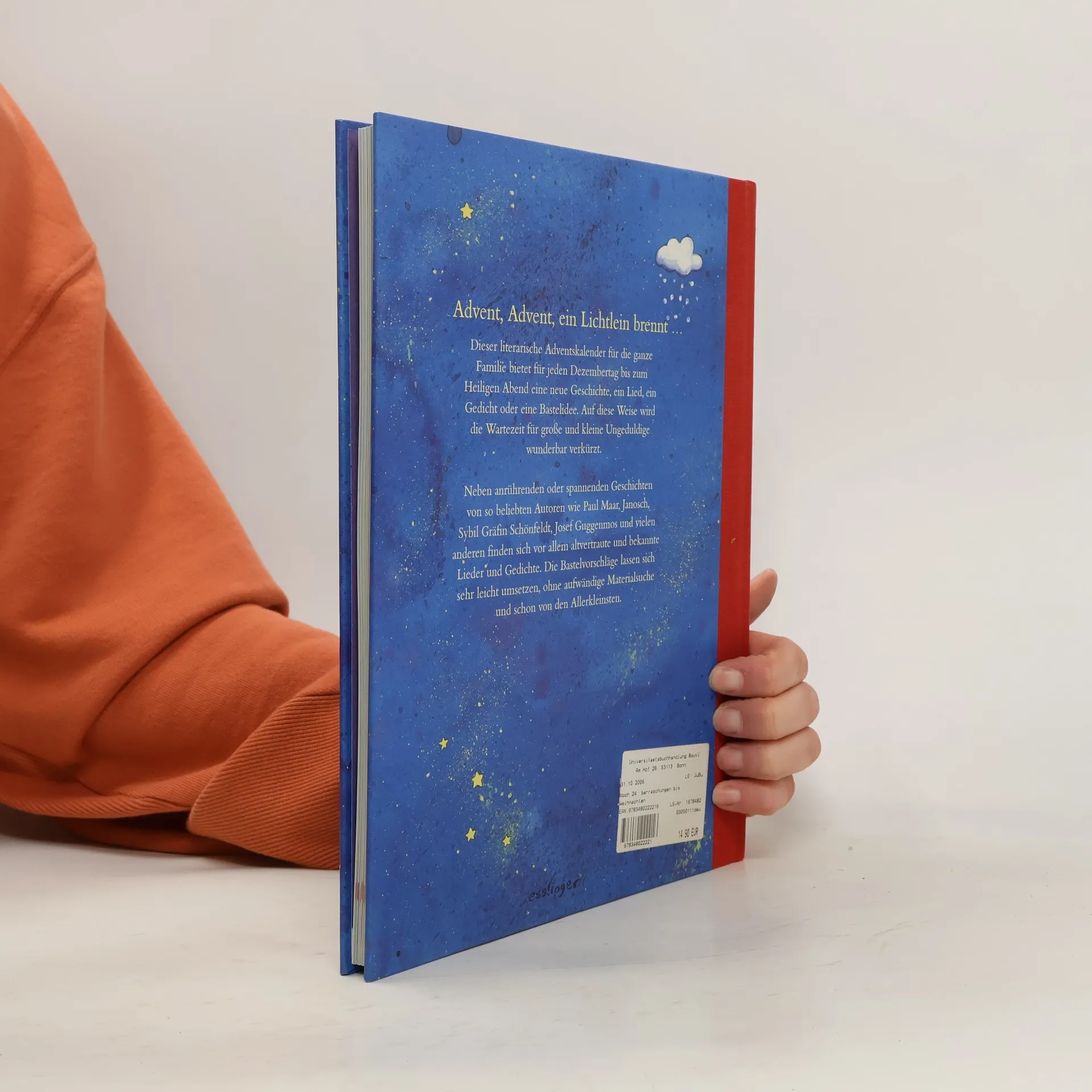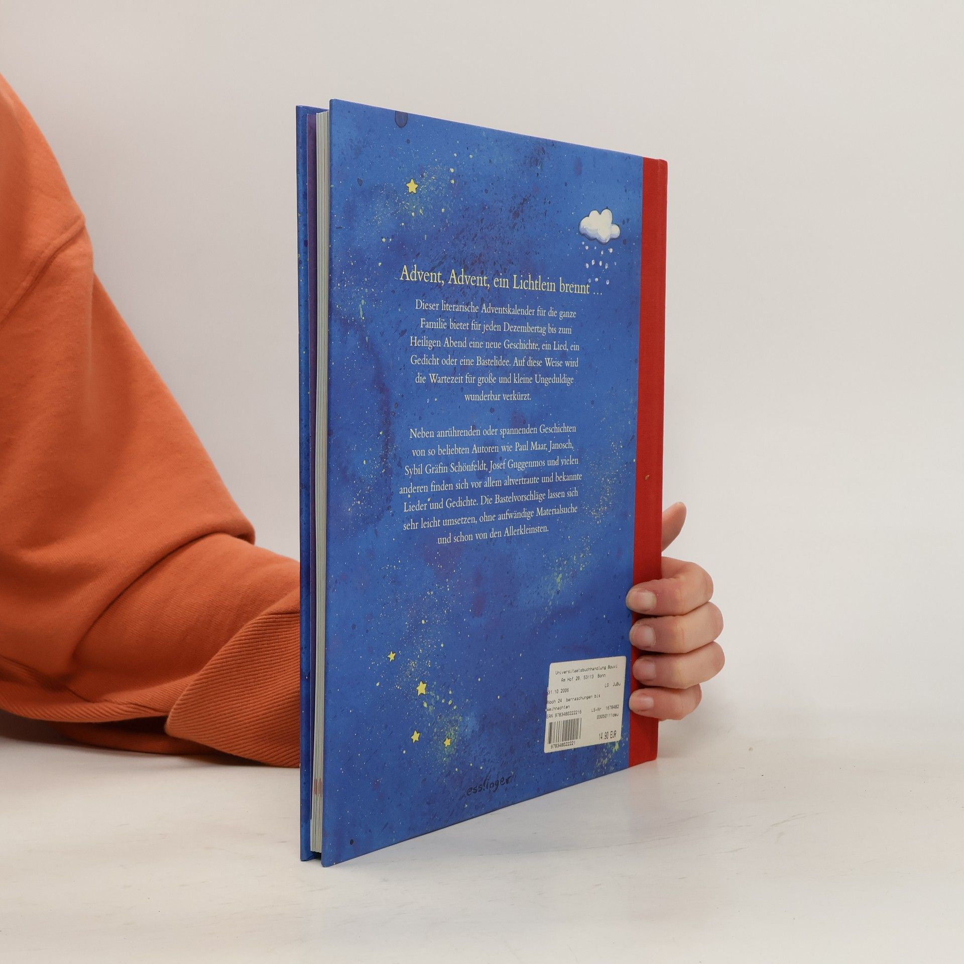 Ein literarischer Adventskalender: Mit dieser bunten Sammlung aus Geschichten, altvertrauten Weihnachtsliedern, bekannten Gedichten und Bastelideen wird das Warten aufs Christkind für die ganze Familie wunderbar verkürzt. Für jeden Dezembertag bis zum Heiligen Abend wartet eine neue Überraschung. Bekannte und beliebte Autoren wie Paul Maar, Janosch, Sybil Gräfin Schönfeldt, Josef Guggenmos und viele andere treffen sich hier zu einem Stelldichein mit anrührenden und spannenden Erzählungen, bestens geeignet auch zum Vorlesen. Die originellen Bastelvorschläge sind mit einfachem Material selbst für die Allerkleinsten leicht zu realisieren, und die liebevoll gestalteten Bilder stimmen auch die Erwachsenen träumerisch auf das grosse Fest ein. Ab 5 Jahren, ausgezeichnet, Silvia Zanetti.