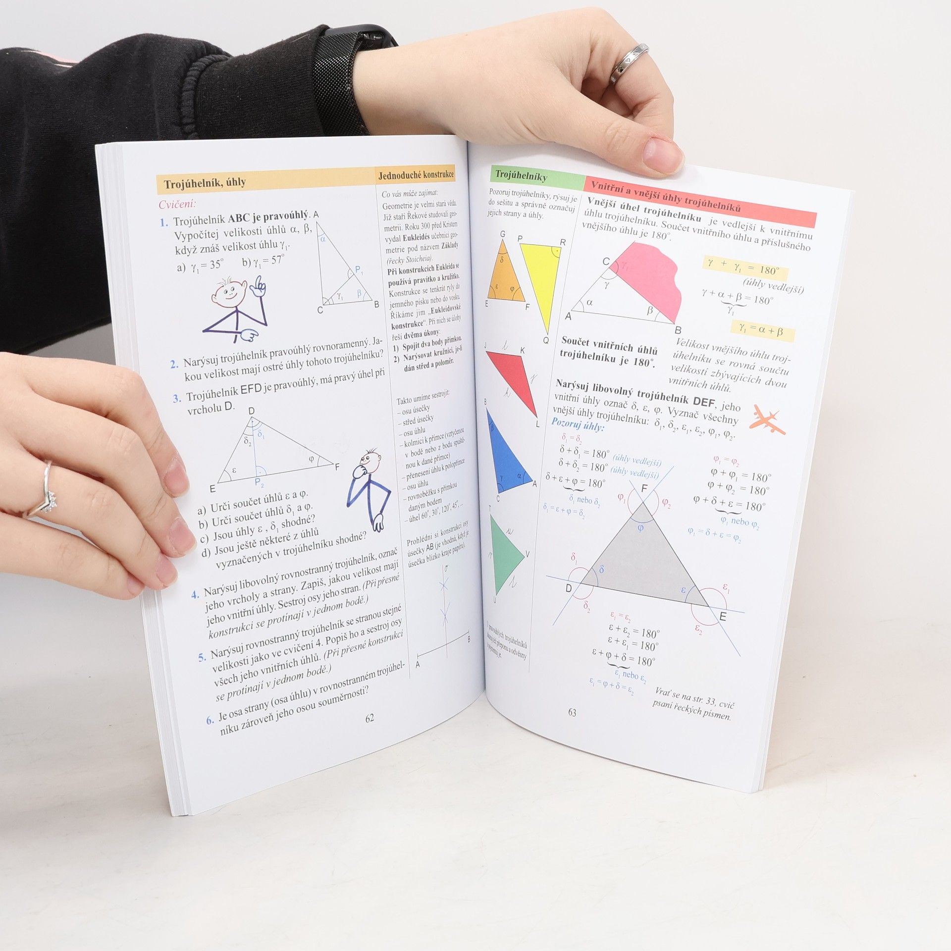 Učebnice je připravena pro činnostní výuku, protože žáci by měli umět novou látku objevovat. Obsahuje témata: opakování, úhel a jeho velikost, osová souměrnost, trojúhelník, objem a povrch. Příklady jsou doplněny ústními testy. Má schvalovací doložku MŠMT.