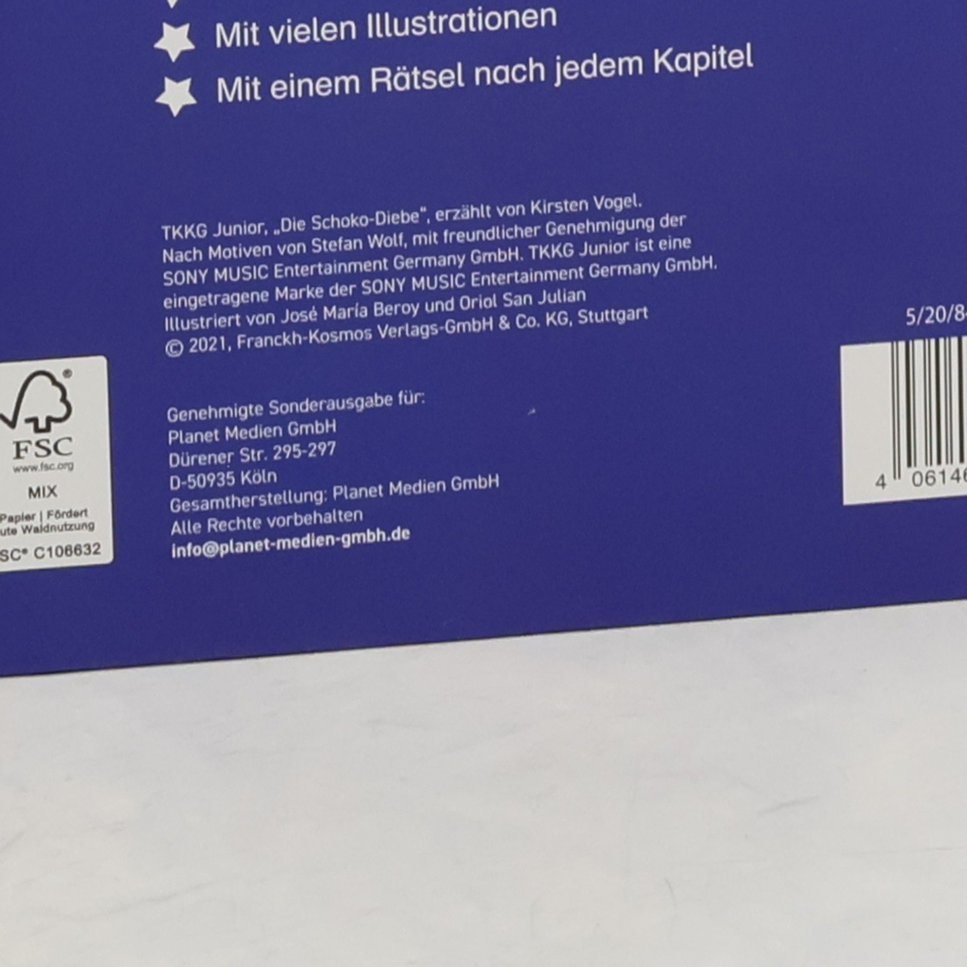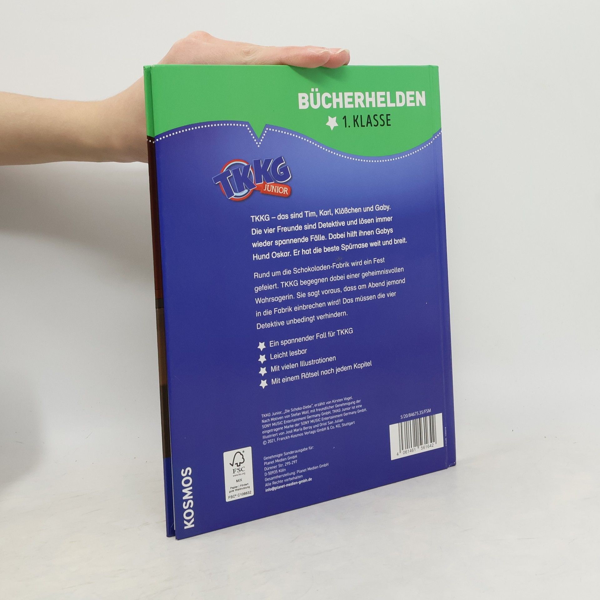 TKKG – das sind Tim, Karl, Klößchen und Gaby. Die vier Freunde lösen mutig jeden Fall und stürzen sich in spannende Abenteuer. Dabei darf Hund Oskar natürlich nicht fehlen. Die Schokoladen-Fabrik feiert ein Fest. Natürlich sind TKKG dabei und haben eine Menge Spaß – bis sie einer geheimnisvollen Wahrsagerin begegnen. Sie sagt voraus, dass am Abend jemand in die Fabrik einbrechen wird! Das müssen die vier Detektive unbedingt verhindern. Lesen lernen ist schwer? Nicht mit dieser spannenden Geschichte, die auch Leseanfänger ab Klassenstufe 1 leicht bewältigen können. Illustrationen und ein Leserätsel am Ende jedes Kapitels machen den Band abwechslungsreich, sorgen für Erfolgserlebnisse und erhöhen die Lese-Motivation. So macht der Einstieg ins selbstständige Bücherlesen einfach Spaß.
