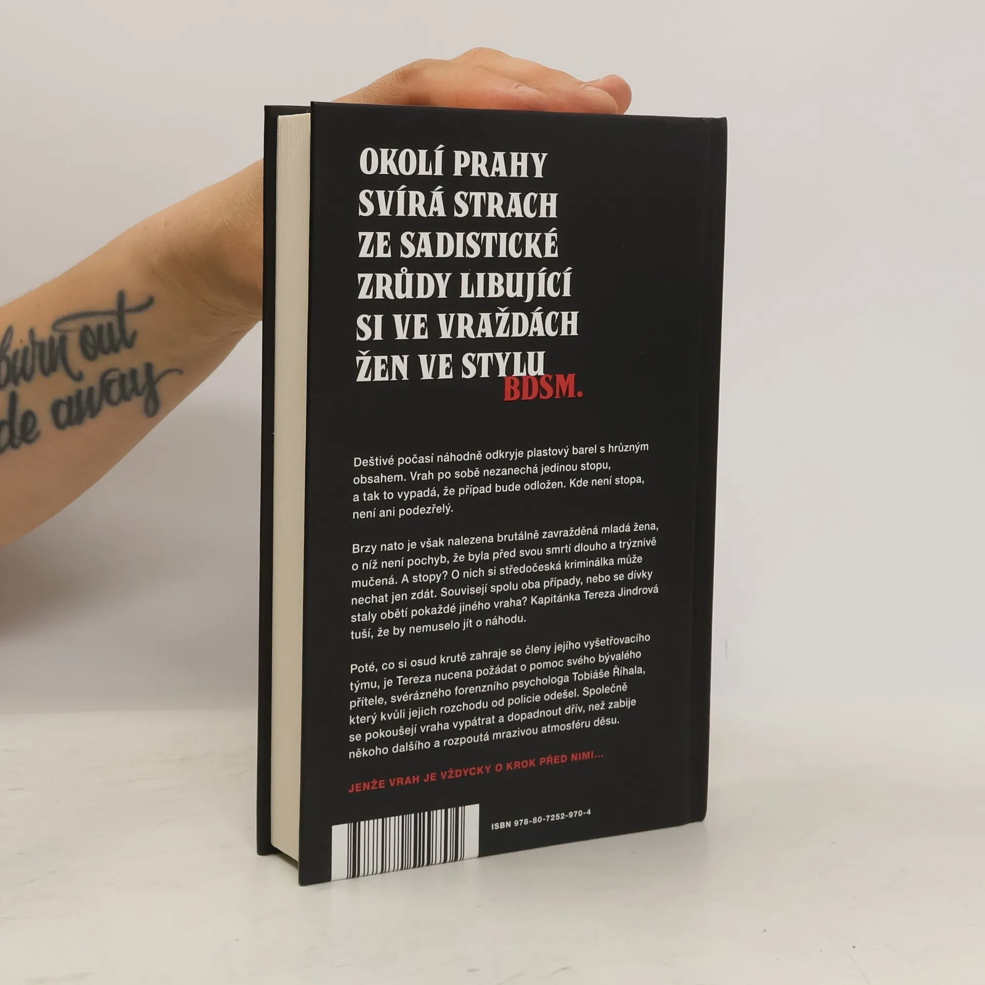 Zvrácenost, s jakou sériový vrah zabíjí mladé dívky, nikdo nepamatuje OKOLÍ PRAHY SVÍRÁ STRACH ZE SADISTICKÉ ZRŮDY LIBUJÍCÍ SI VE VRAŽDÁCH ŽEN VE STYLU BDSM. Deštivé počasí náhodně odkryje plastový barel s hrůzným obsahem. Vrah po sobě nezanechá jedinou stopu, a tak to vypadá, že případ bude odložen. Kde není stopa, není ani podezřelý. Brzy nato je však nalezena brutálně zavražděná mladá žena, o níž není pochyb, že byla před svou smrtí dlouho a trýznivě mučená. A stopy? O nich si středočeská kriminálka může nechat jen zdát. Souvisejí spolu oba případy, nebo se dívky staly obětí pokaždé jiného vraha? Kapitánka Tereza Jindrová tuší, že by nemuselo jít o náhodu. Poté, co si osud krutě zahraje se členy jejího vyšetřovacího týmu, je Tereza nucena požádat o pomoc svého bývalého přítele, svérázného forenzního psychologa Tobiáše Říhala, který kvůli jejich rozchodu od policie odešel. Společně se pokoušejí vraha vypátrat a dopadnout dřív, než zabije někoho dalšího a rozpoutá mrazivou atmosféru děsu. Jenže vrah je vždycky o krok před nimi...