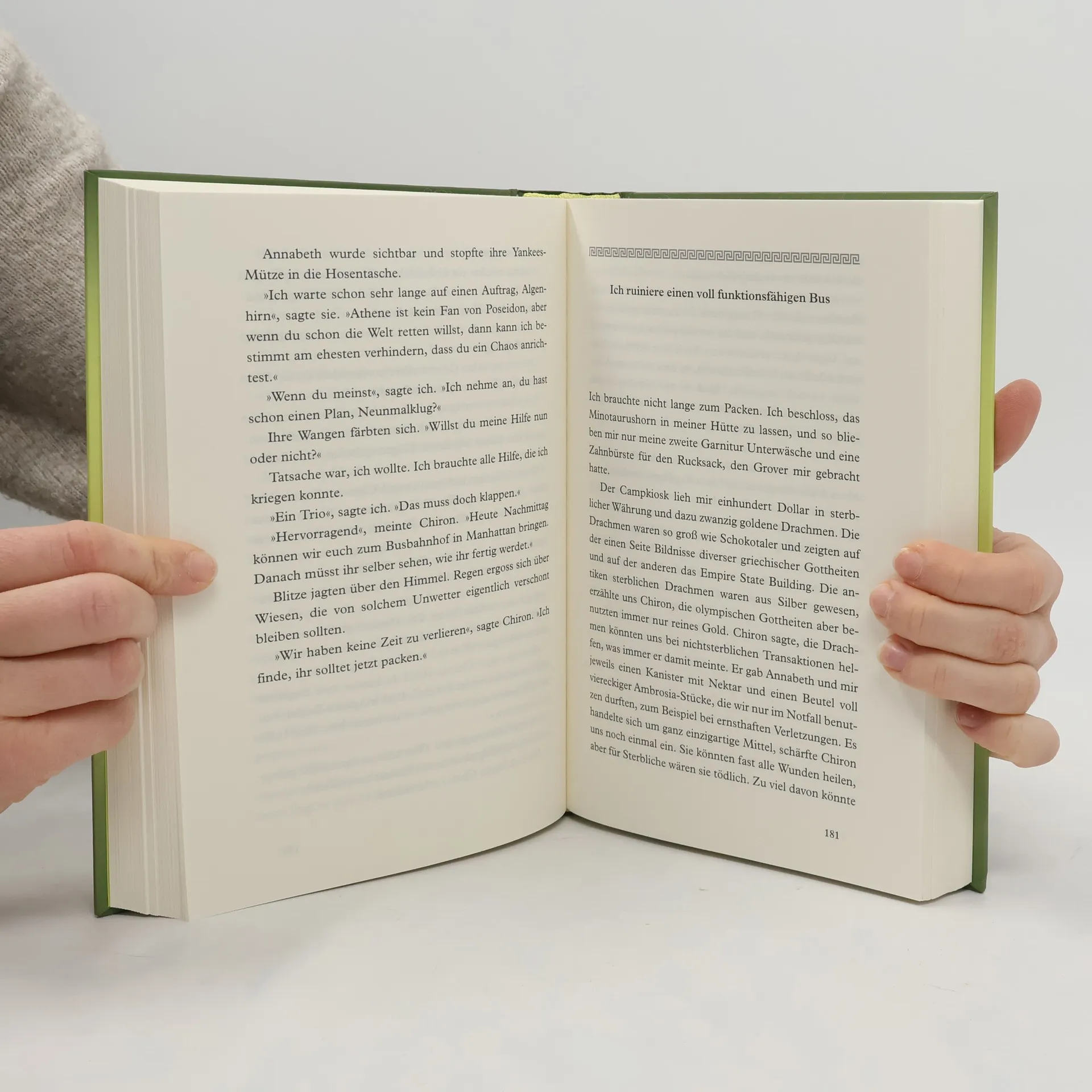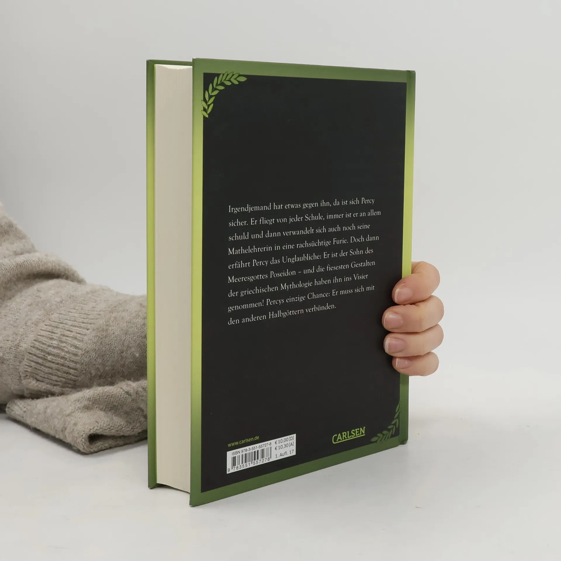 Percy versteht die Welt nicht mehr. Jedes Jahr fliegt er von einer anderen Schule. Ständig passieren ihm seltsame Unfälle. Und jetzt soll er auch noch an dem Tornado schuld sein! Langsam wird ihm klar: Irgendjemand hat es auf ihn abgesehen. Als Percy sich mit Hilfe seines Freundes Grover vor einem Minotaurus ins Camp Half-Blood rettet, erfährt er die Wahrheit: Sein Vater ist der Meeresgott Poseidon, Percy also ein Halbgott. Und er hat einen mächtigen Feind: Kronos, den Titanen. Die Götter stehen Kopf - und Percy und seine Freunde vor einem unglaublichen Abenteuer ... Alle Bände der Percy-Jackson-Serie: Percy Jackson – Diebe im Olymp (Band 1) Percy Jackson – Im Bann des Zyklopen (Band 2) Percy Jackson – Der Fluch des Titanen (Band 3) Percy Jackson – Die Schlacht um das Labyrinth (Band 4) Percy Jackson – Die letzte Göttin (Band 5) Percy Jackson – Auf Monsterjagd mit den Geschwistern Kane (Sonderband) Percy Jackson erzählt: Griechische Göttersagen Percy Jackson erzählt: Griechische Heldensagen Und dann geht es weiter mit den »Helden des Olymp«!