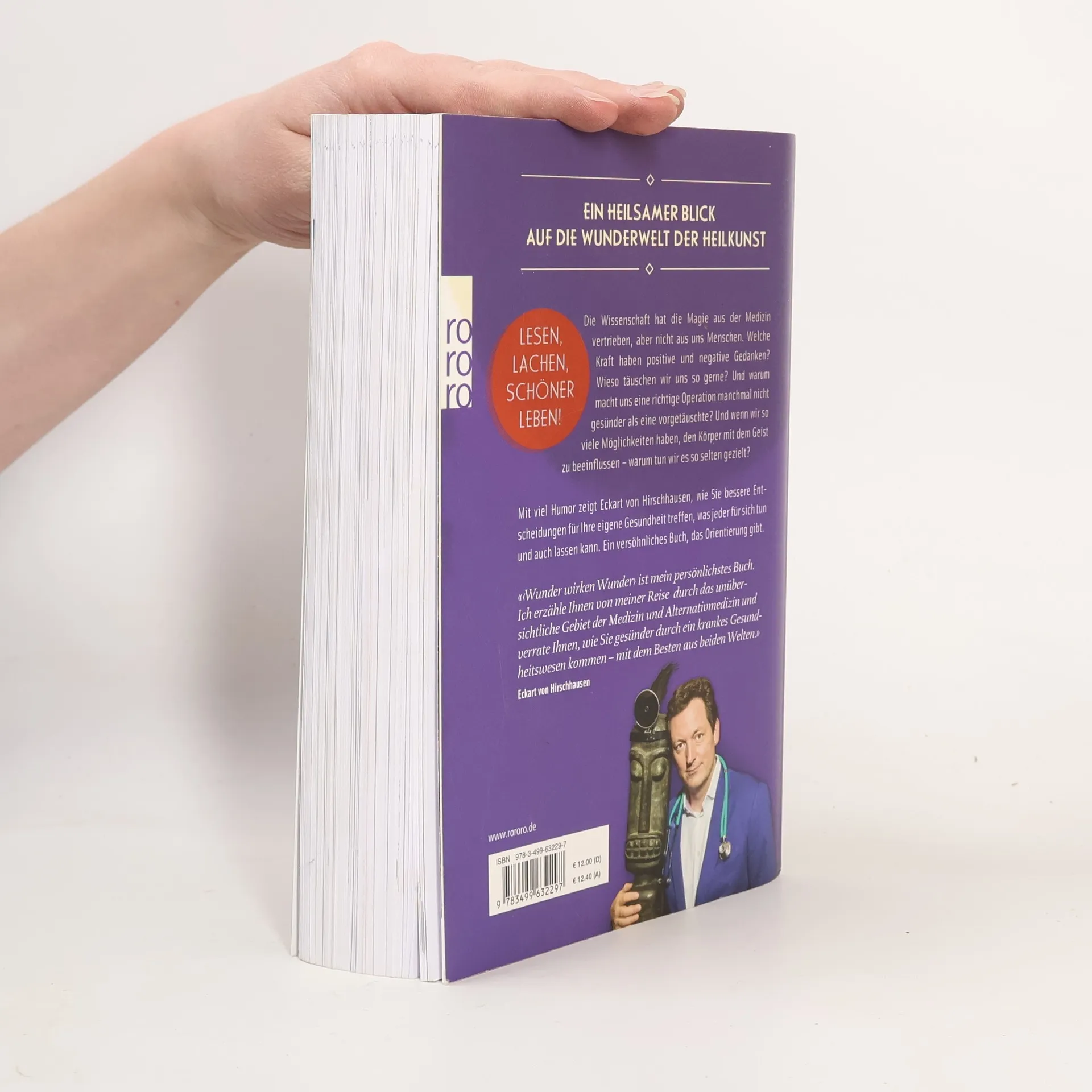 Ein heilsamer Blick auf die Wunderwelt der Heilkunst Die Wissenschaft hat die Magie aus der Medizin vertrieben, aber nicht aus uns Menschen. Welche Kraft haben positive und negative Gedanken? Wieso täuschen wir uns so gerne? Und warum macht uns eine richtige Operation manchmal nicht gesünder als eine vorgetäuschte? Der Placeboeffekt ist mächtig! Und wenn wir so viele Möglichkeiten haben, den Körper mit dem Geist zu beeinflussen – warum tun wir es so selten gezielt? Mit viel Humor zeigt Eckart von Hirschhausen, wie Sie bessere Entscheidungen für Ihre eigene Gesundheit treffen, was jeder für sich tun und auch lassen kann. Klartext statt Beipackzettel. Ein versöhnliches Buch, das Orientierung gibt: Was ist heilsamer Zauber, und wo fängt gefährlicher Humbug an? Hirschhausen entdeckt neue Wundermittel im Alltag.Wundern wir uns vielleicht zu wenig? Jesus konnte Wasser in Wein verwandeln. Aber ist es nicht mindestens so erstaunlich, dass der menschliche Körper in der Lage ist, über Nacht aus dem ganzen Wein wieder Wasser zu machen? Wenn Sie dieses Buch nicht mit eigenen Augen gelesen haben – mit welchen dann? «'Wunder wirken Wunder› ist mein persönlichstes Buch. Ich erzähle Ihnen von meiner Reise durch das unübersichtliche Gebiet der Medizin und Alternativmedizin und verrate Ihnen, wie Sie gesünder durch ein krankes Gesundheitswesen kommen – mit dem Besten aus beiden Welten.» (Eckart von Hirschhausen)