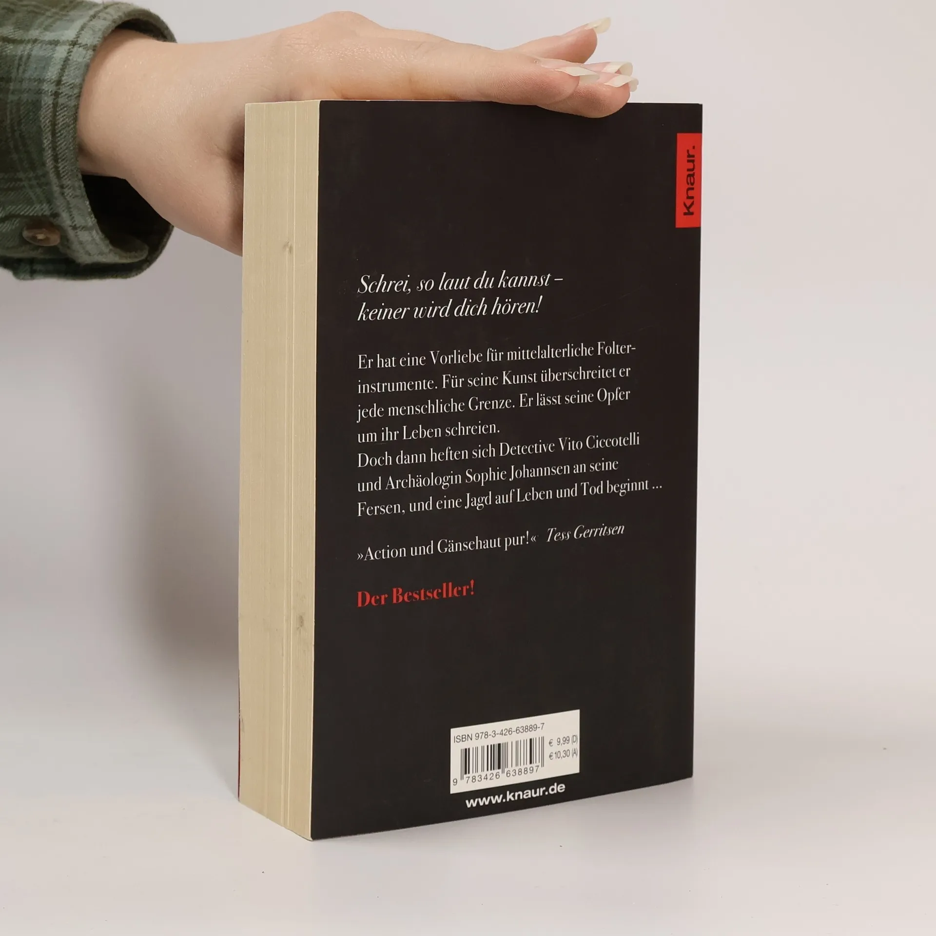 Schrei, so laut du kannst – keiner wird dich hören! Er hat eine Vorliebe für mittelalterliche Folterinstrumente. Für seine Kunst überschreitet er jede menschliche Grenze. Er lässt seine Opferum ihr Leben schreien. Doch dann heften sich Detective Vito Ciccotelli und Archäologin Sophie Johannsen an seine Fersen, und eine Jagd auf Leben und Tod beginnt … »Action und Gänsehaut pur!« Tess Gerritsen Der Bestseller!