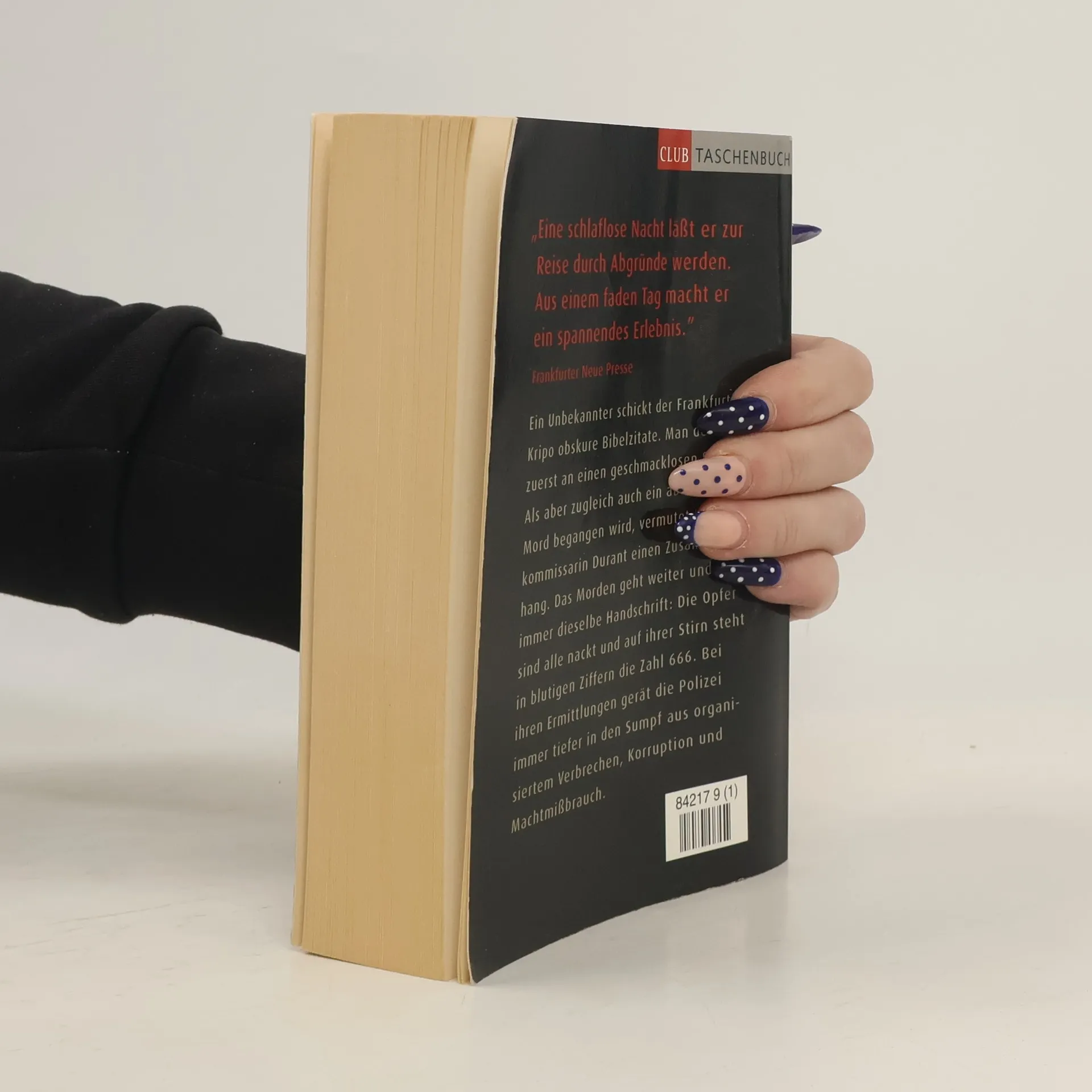 Ein Unbekannter schickt der Frankfurter Kripo obskure Bibelzitate. Man denkt zuerst an einen geschmacklosen Scherz. Als aber zur gleichen Zeit auch ein abscheulicher Mord begangen wird, vermutet Hauptkommissarin Durant einen Zusammenhang. Das Morden geht weiter und trägt immer dieselbe Handschrift: Die Opfer sind alle nackt, und auf ihrer Stirn steht in blutigen Ziffern die Zahl 666. Bei ihren Ermittlungen gerät die Polizei immer tiefer in einen Sumpf aus organisiertem Verbrechen, Korruption und Machtmissbrauch.
