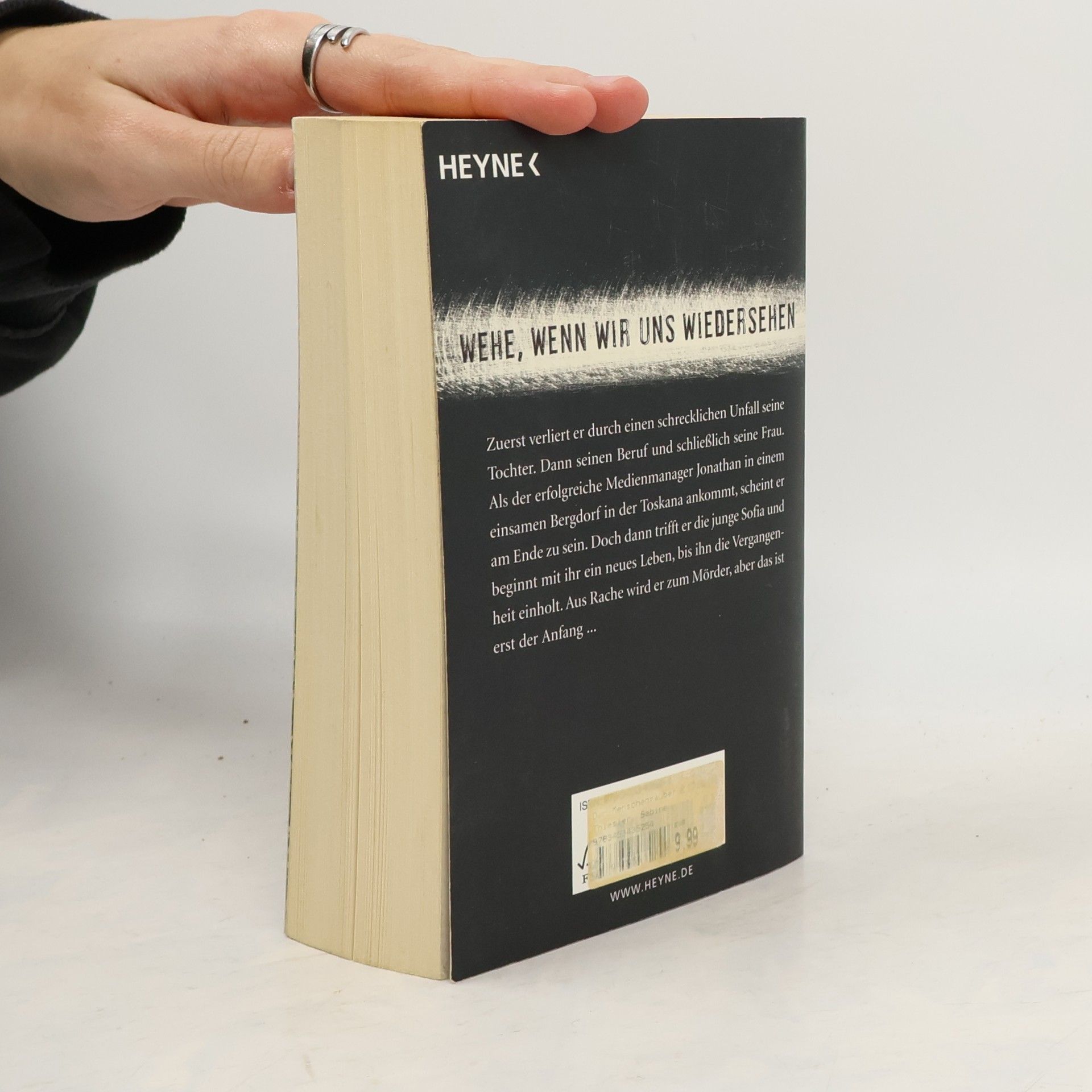 Wehe, wenn wir uns wiedersehen Zuerst verliert er durch einen schrecklichen Unfall seine Tochter. Dann seinen Job und schließlich seine Frau. Als der erfolgreiche Medienmanager Jonathan in einem einsamen Bergdorf in der Toskana ankommt, scheint er am Ende zu sein. Doch dann trifft er die junge Sophia und beginnt mit ihr ein neues Leben, bis ihn die Vergangenheit einholt. Aus Rache wird er zum Mörder, aber das ist erst der Anfang …
