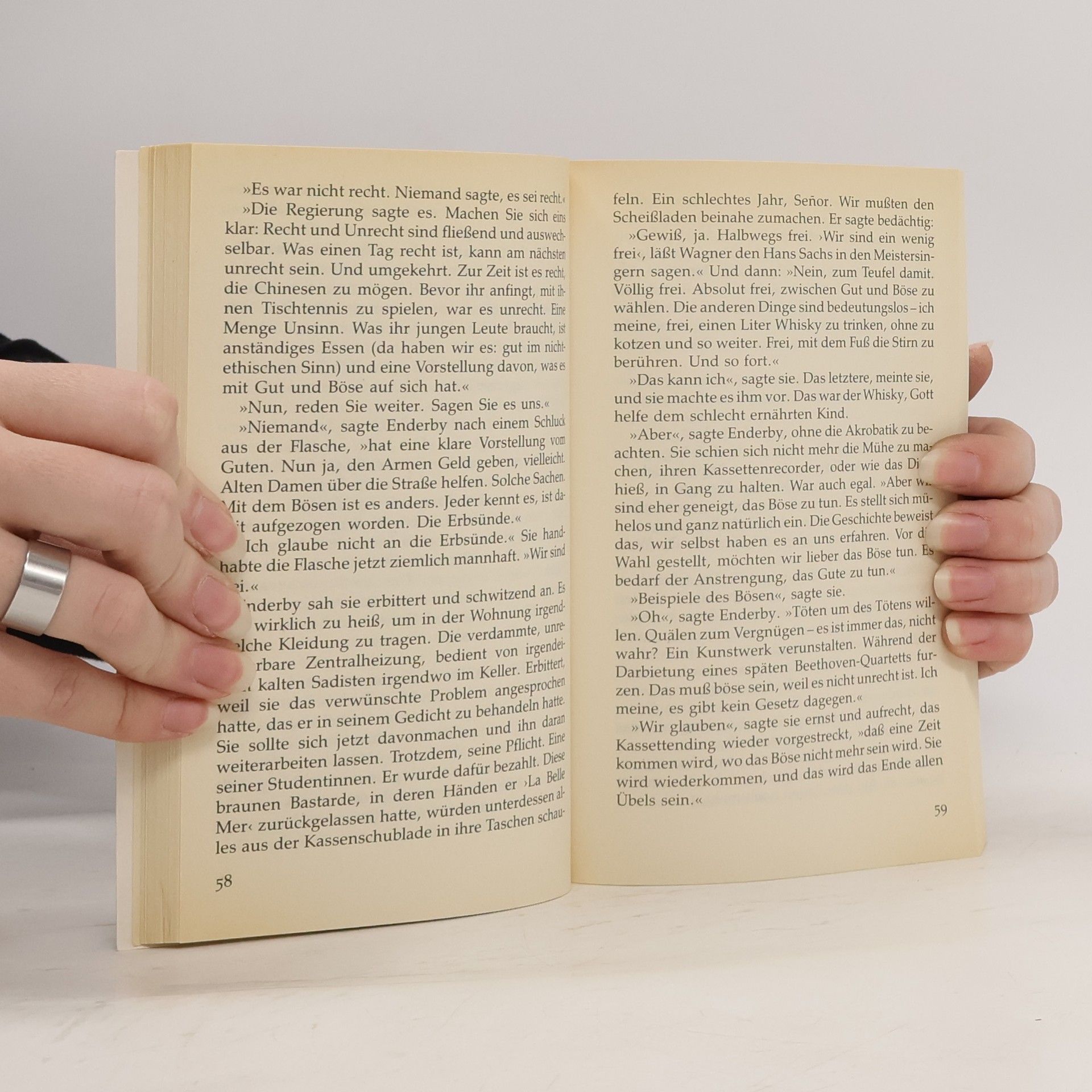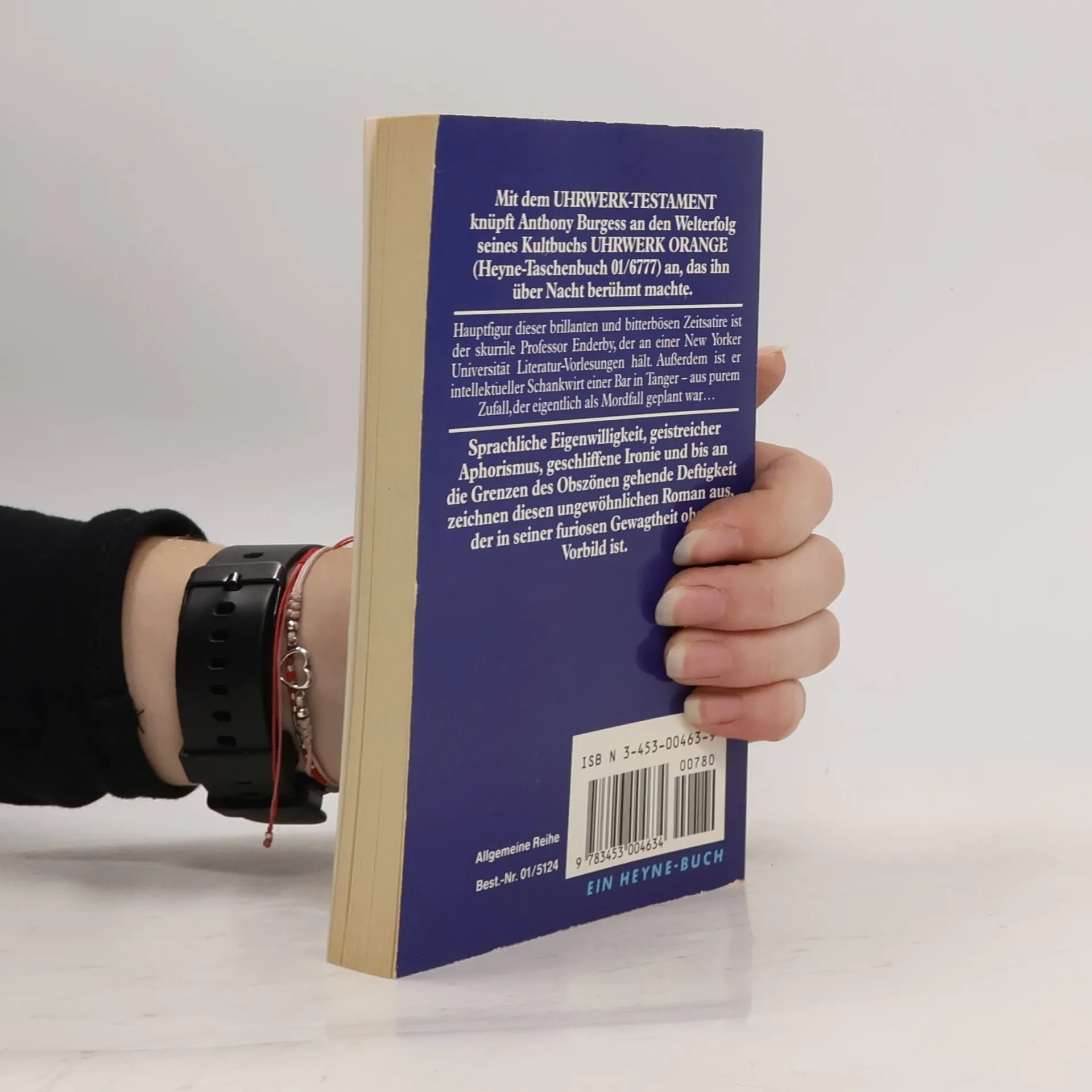 Nach „CLOCKWORK ORANGE“ präsentiert Anthony Burgess einen neuen intellektuell-zeitkritischen Roman, der die merkwürdige Existenz des Professors Enderby schildert. Er lehrt Literatur an einer New Yorker Universität und betreibt zufällig eine Bar in Tanger, ursprünglich als Mordfall geplant. Enderby ist ein skurriler Vertreter beider Zünfte, der als Realist und Idealist zugleich auftritt. Seine Auffassung von menschlicher Freiheit und der Entscheidung für oder gegen das Böse ist sowohl intellektuell überzogen als auch derb und spöttisch gegenüber bürgerlichen Konventionen. Trotz seiner Feinde, die er genießt, bleibt er ihnen nie aus dem Weg. Der lebendige Geist Enderbys kämpft in einem zunehmend verfallenden Körper – fettsüchtig, kurzsichtig, zahnlos und mit Angina Pectoris. Er hält das Leben fest, obwohl es ihm mit jeder Herzattacke mehr entgleitet. Er nutzt die Freiheit des „So-und-nicht-anders-Sein“ bis zum letzten Moment und hinterlässt sein Beispiel als Testament für diejenigen, die es verstehen. Der Roman besticht durch sprachliche Eigenwilligkeit, geistreiche Aphorismen, scharfe Ironie und eine derbe Deftigkeit, die ihn einzigartig macht. Diese brillante und bitterböse Satire auf gegenwärtige Trends ist in ihrer gewagten Wortgewalt ohne Vorbild und wird wohl auch ohne Nachfolger bleiben.