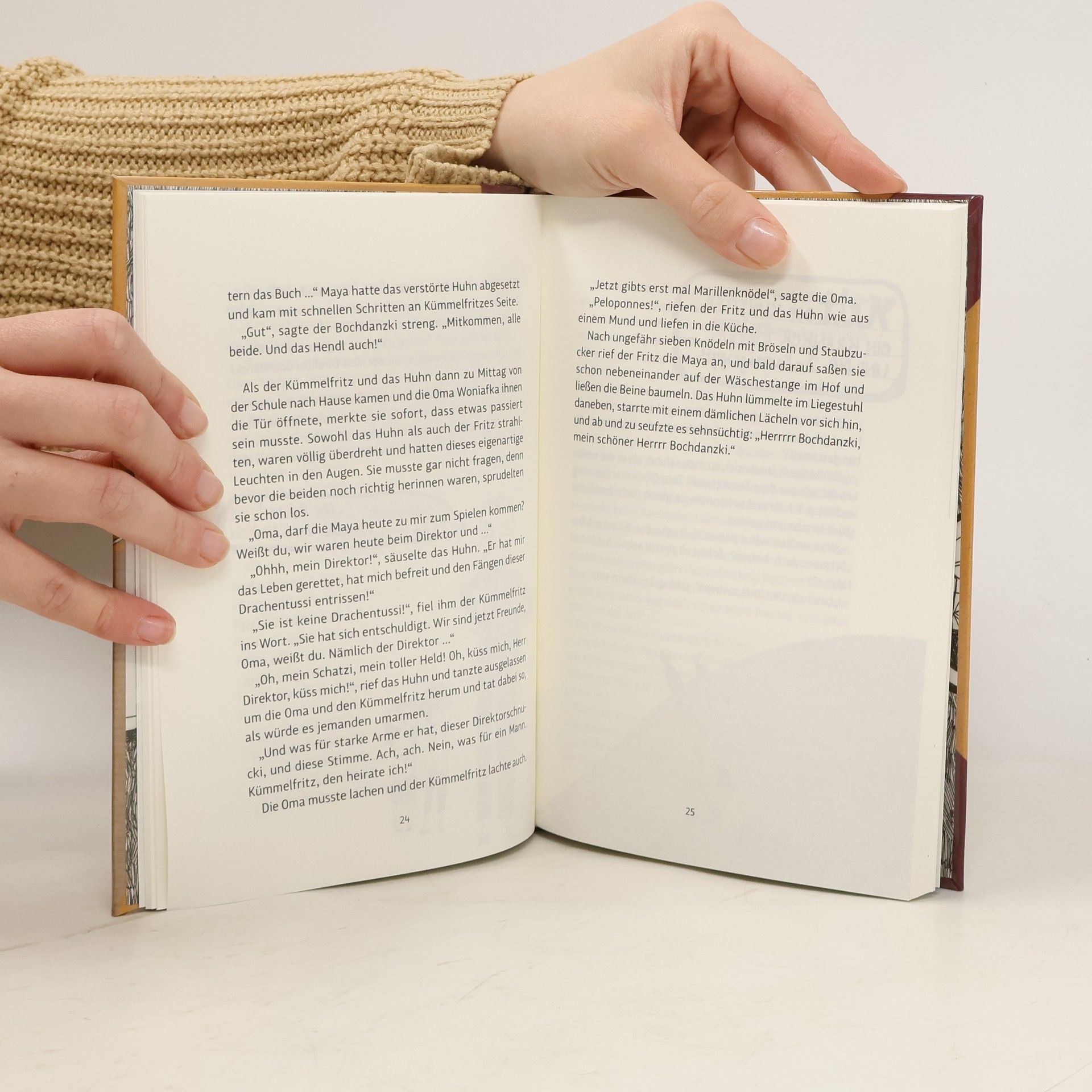 Das Huhn und der Kümmelfritz sind allerbeste Freunde und ein gutes Team. Wenn dem Kümmelfritz die blöden Ideen ausgehen, kann man sicher sein, dass dem Huhn noch was einfällt. Es hat eine große Klappe, und bevor es zu kurz kommt, denkt es sicherheitshalber einmal an seinen eigenen Vorteil. So manövriert es sich manchmal in unangenehme Situationen und muss dann ziemlich rudern, damit es wieder herauskommt. Der Kümmelfritz, die Woniafka Oma und die Maya sind aber sehr nett und lieben das Huhn. Drum helfen sie ihm oft aus der Patsche. Und das Huhn ist so ungemein großzügig, dass es sich helfen lässt