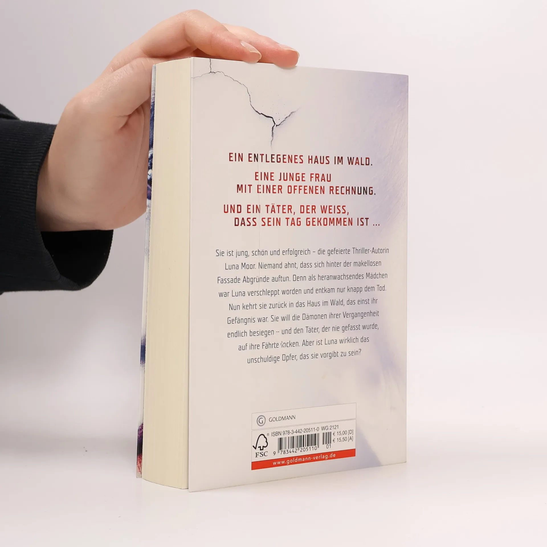 Luna Moor ist eine gefeierte junge Autorin auf dem Gipfel ihres Erfolgs. Keine schreibt so packend und mitreißend wie sie über die Abgründe der menschlichen Seele, und ihre Bücher gehen unter die Haut. Niemand ahnt, dass Luna selbst als junges Mädchen in die Hände eines Wahnsinnigen fiel und ihm nur knapp entkam. Seither quält sie die Erinnerung an den Täter, und eines Tages fasst sie den kühnen Entschluss, an den Ort ihres Martyriums zurückzukehren. Sie will eintauchen in die bedrohliche Atmosphäre des einsam gelegenen Hauses, in dem sie einst gefangen war, und versuchen zu verstehen, was damals geschah. Gemeinsam mit Leon, dem Sohn einer Freundin, richtet sie sich ein in dem verlassenen Haus im Wald. Sehr schnell muss sie jedoch erkennen, dass sie in einen Albtraum geraten ist, aus dem es kein Erwachen zu geben scheint. Aber ist Luna wirklich das unschuldige Opfer, das sie vorgibt zu sein?
