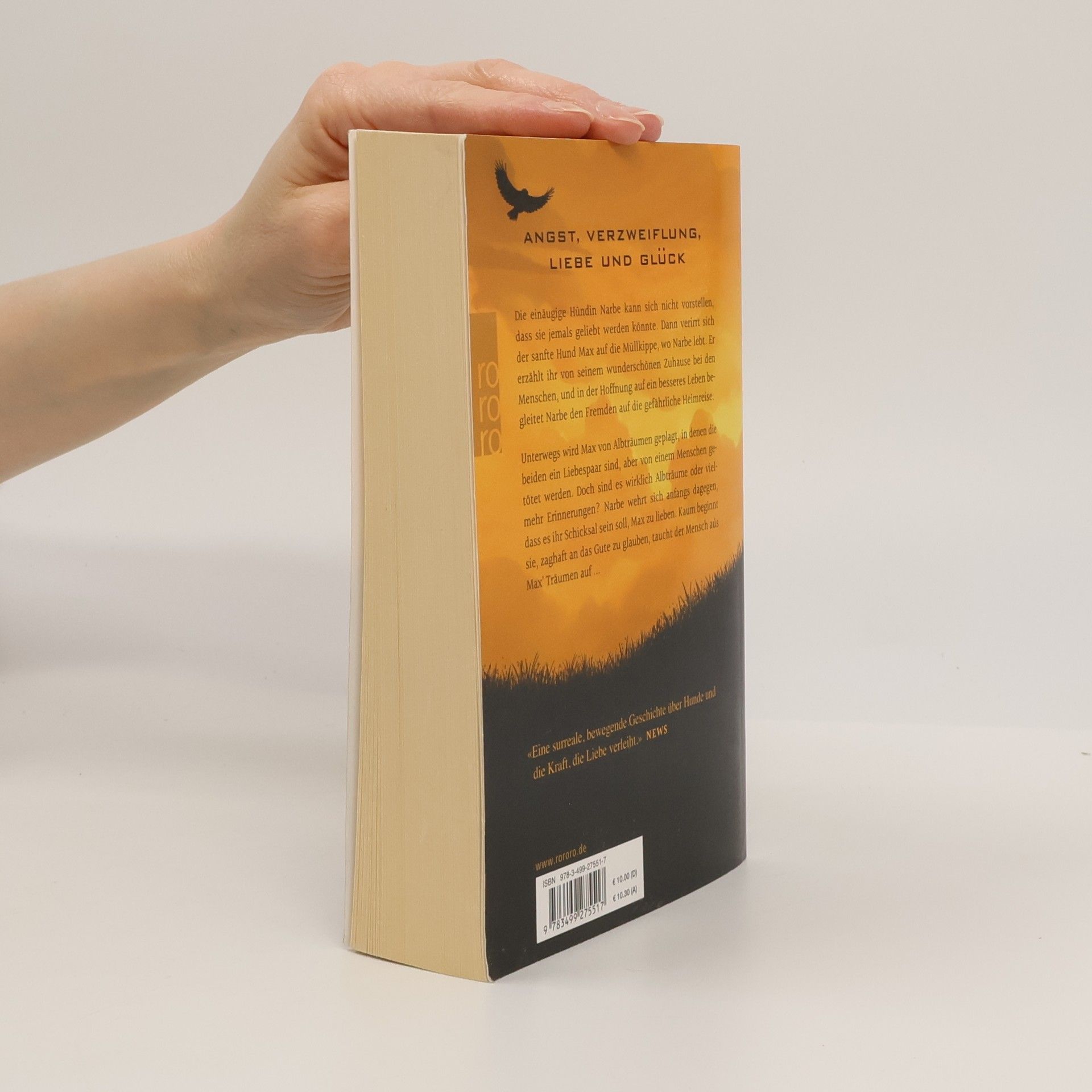 Angst, Verzweiflung, Liebe und Glück: Bestsellerautor David Safiers zauberhafter Roman über die großen Fragen der Tiere und Menschen. Die einäugige Hündin Narbe kann sich nicht vorstellen, dass sie jemals geliebt werden könnte. Dann verirrt sich der sanfte Hund Max auf die Müllkippe, wo Narbe lebt. Er erzählt ihr von seinem wunderschönen Zuhause bei den Menschen, und in der Hoffnung auf ein besseres Leben begleitet Narbe den Fremden auf die gefährliche Heimreise. Unterwegs wird Max von Alpträumen geplagt, in denen die beiden ein Liebespaar sind, aber von einem Menschen getötet werden. Doch sind es wirklich Alpträume oder vielmehr Erinnerungen? Narbe wehrt sich anfangs dagegen, dass es ihr Schicksal sein soll, Max zu lieben. Kaum beginnt sie zaghaft an das Gute zu glauben, taucht der Mensch aus Maxʼ Träumen auf …