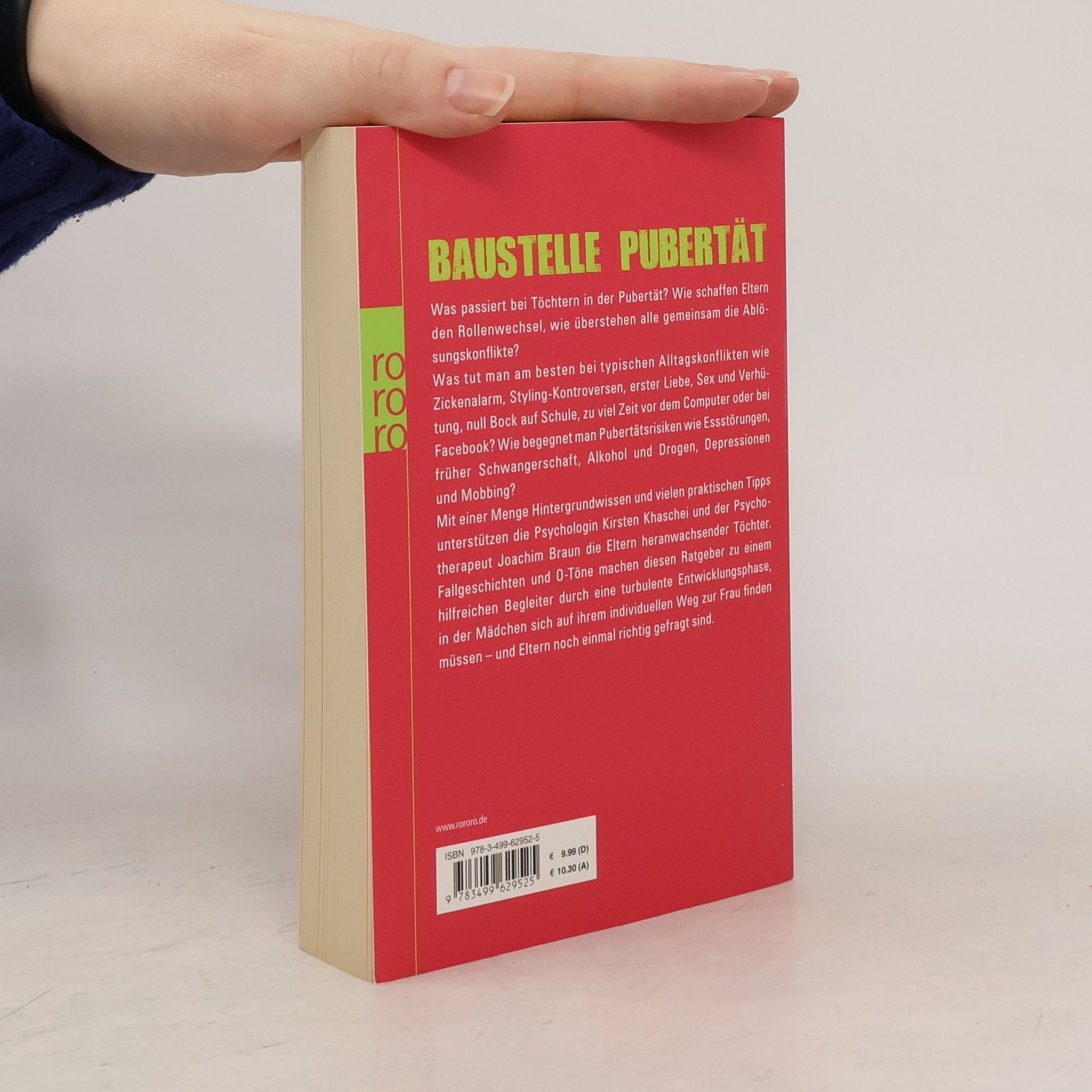 BAUSTELLE PUBERTÄTWas passiert bei Töchtern in der Pubertät? Wie schaffen Eltern den Rollenwechsel, wie überstehen alle gemeinsam die Ablösungskonflikte? Was tut man am besten bei typischen Alltagskonflikten wie Zickenalarm, Styling-Kontroversen, erster Liebe, Sex und Verhütung, null Bock auf Schule, zu viel Zeit vor dem Computer oder bei Facebook? Wie begegnet man Pubertätsrisiken wie Essstörungen, früher Schwangerschaft, Alkohol und Drogen, Depressionen und Mobbing?Mit einer Menge Hintergrundwissen und vielen praktischen Tipps unterstützen die Psychologin Kirsten Khaschei und der Psychotherapeut Joachim Braun die Eltern heranwachsender Töchter. Fallgeschichten und O-Töne machen diesen Ratgeber zu einem hilfreichen Begleiter durch eine turbulente Entwicklungsphase, in der Mädchen sich auf ihrem individuellen Weg zur Frau finden müssen – und Eltern noch einmal richtig gefragt sind.