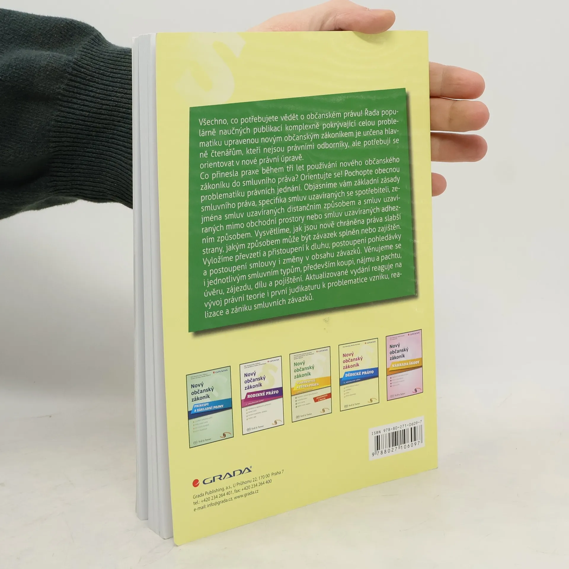 Všechno, co potřebujete vědět o občanském právu! Řada populárně naučných publikací komplexně pokrývající celou problematiku upravenou novým občanským zákoníkem je určena hlavně čtenářům, kteří nejsou právními odborníky, ale potřebují se orientovat v nové právní úpravě. Co přinesla praxe během tří let používání nového občanského zákoníku do smluvního práva? Orientujte se! Pochopte obecnou problematiku právních jednání. Objasníme vám základní zásady smluvního práva, specifika smluv uzavíraných se spotřebiteli, zejména smluv uzavíraných distančním způsobem a smluv uzavíraných mimo obchodní prostory nebo smluv uzavíraných adhezním způsobem. Vysvětlíme, jak jsou nově chráněna práva slabší strany, jakým způsobem může být závazek splněn nebo zajištěn. Vyložíme převzetí a přistoupení k dluhu, postoupení pohledávky a postoupení smlouvy i změny v obsahu závazků. Věnujeme se i jednotlivým smluvním typům, především koupi, nájmu a pachtu, úvěru, zájezdu, dílu a pojištění. Aktualizované vydání reaguje na vývoj právní teorie i první judikaturu k problematice vzniku, realizace a zániku smluvních závazků. 2., aktualizované vydání