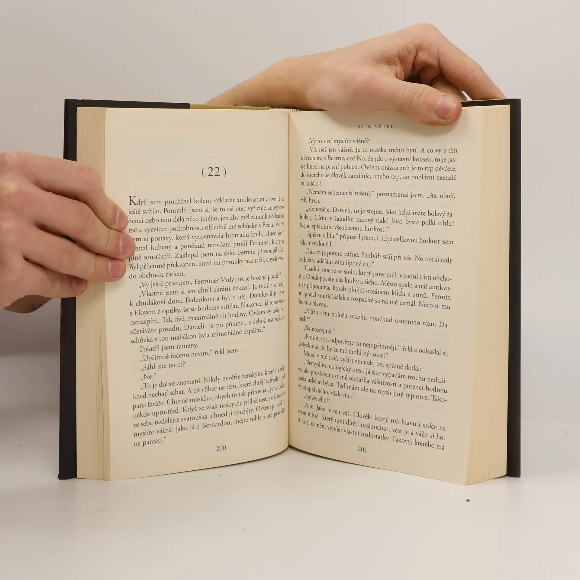 Stín větru, literární thriller s prvky historického, gotického i detektivního románu, se stal kultovním knižním fenoménem a celosvětovým bestsellerem vydaným ve 45 zemích. Carlos Ruiz Zafón v něm poprvé uvedl čtenáře do magického světa Pohřebiště zapomenutých knih – a k jejich radosti tak učinil ještě třikrát, v prózách Andělská hra, Nebeský vězeň a Labyrint duchů. Ukryté hluboko v srdci starobylé Barcelony leží pohřebiště tisíců ztracených či odložených svazků. Sem je jednoho chladného rána roku 1945 přiveden desetiletý Daniel Sempere, aby si vybral jeden titul. Daniel zvolí román Stín větru záhadného autora Juliána Caraxe – a nastoupí spletitou a nebezpečnou cestu iniciace do světa literatury i dospívání. Životní osudy Daniela a Juliána se začnou protínat, až nakonec vytvoří složitý mnohavrstevný propletenec…