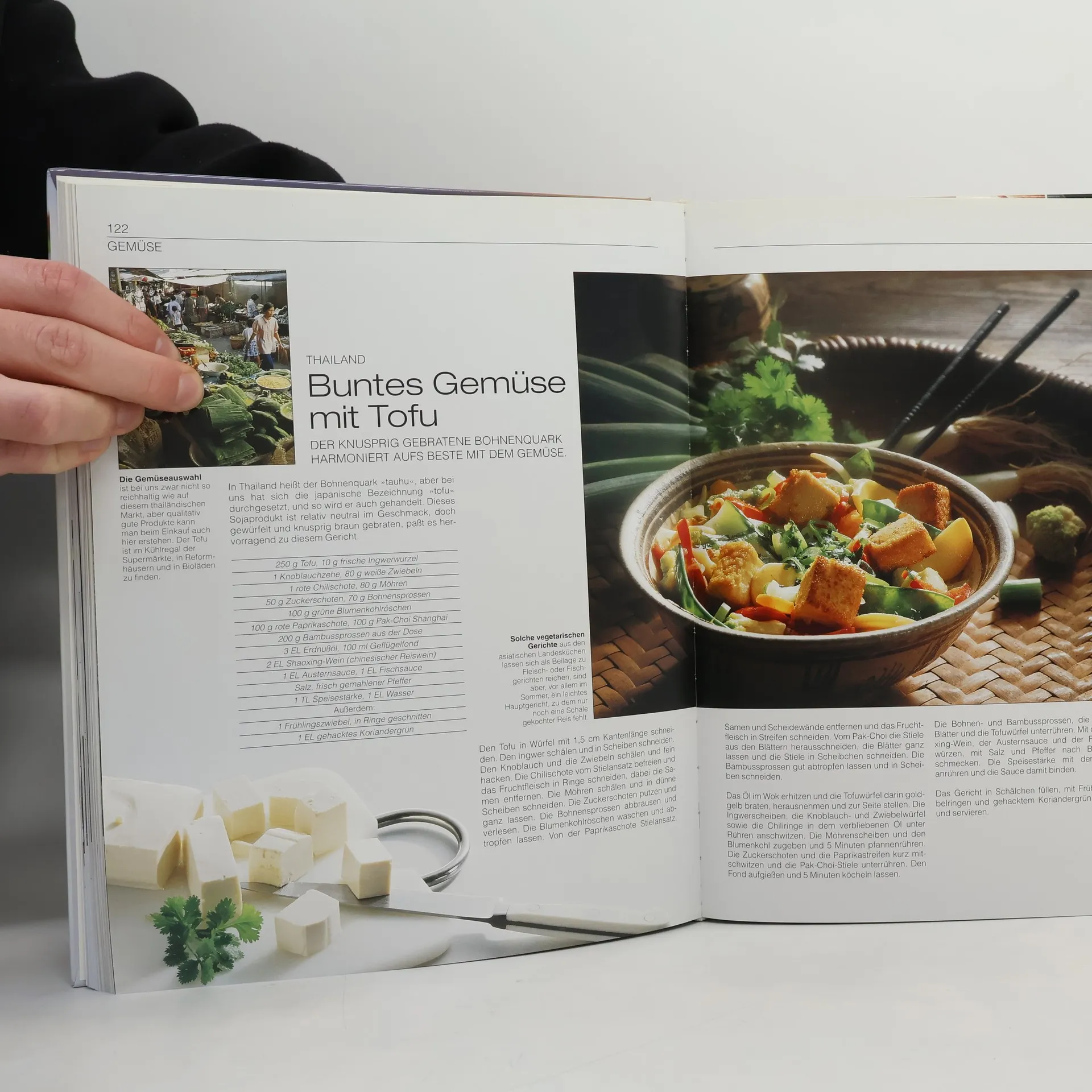 Spezialisten aus allen Küchen Asiens haben an diesem Buch mitgewirkt. Deren Wissen sowie die Rezepte wurden den europäischen Verhältnissen entsprechend aufbereitet. So ist ein Kochbuch entstanden, das zum einen die notwendigen Kenntnisse vermittelt, zum andern praktische Anleitung gibt, um selbst asiatisch kochen zu können. Die Warenkunde zeigt in Text und Bild alle wichtigen Zutaten für das asiatische Kochen. Die Küchenpraxis macht mit den Grundzubereitungen und unterschiedlichen Garmethoden des asiatischen Kochens vertraut. Kochtechniken und -geräte werden umfassend in Text und Bild präsentiert. Die Rezepte spiegeln die ganze kulinarische Vielfalt Asiens wider: feine Suppen, delikates Gemüse, zartes Fleisch und Geflügel, wohl gewürzte Curries, Variationen von Nudeln und Reis und köstliche Snacks. Die verständlich beschriebenen Rezepte und großformatige, brillante Farbfotos regen zum Nachkochen an.