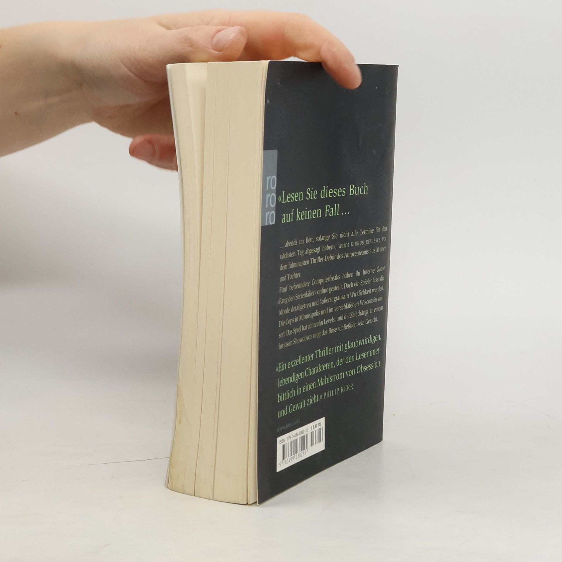 “Lesen sie dieses Buch auf keinen Fall... abends im Bett, solange sie nicht alle Termine für den nächsten Tag abgesagt haben, warnt “Kirkus Reviews” vor dem fulminanten Thriller-Debüt des Autorenteams aus Mutter und Tochter.Fünf befreundete Computerfreaks haben ihr Internet-Game “Fang den Serienkiller” online gestellt. Doch ein Spieler lässt die Morde detailgetreu und äußerst grausam Wirklichkeit werden. Die Cops in Minneapolis und im verschlafenen Wisconsin wissen: Das Spiel hat achtzehn Levels, und die Zeit drängt. In einem furiosen Showdown zeigt das Böse schließlich sein Gesicht.“Ein exzellenter Thriller mit glaubwürdigen, lebendigen Charakteren, der den Leser unerbittlich in einen Mahlstrom von Obsession und Gewalt zieht.” (Philip Kerr)