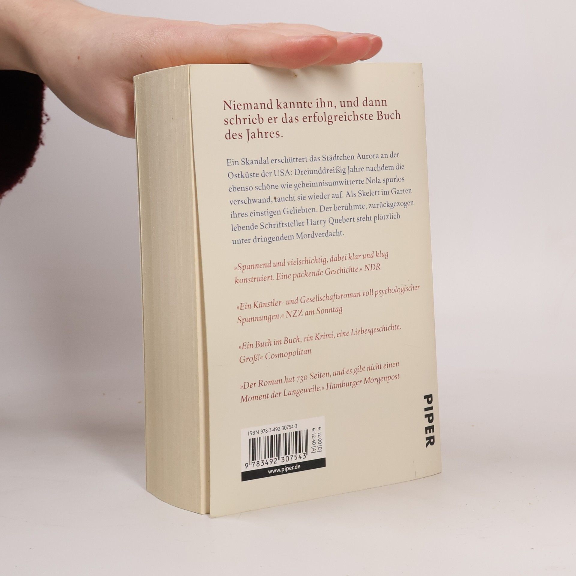 »Spannend und vielschichtig, dabei klar und klug konstruiert. Eine packende Geschichte.« NDR Ein Skandal erschüttert das Städtchen Aurora an der Ostküste der USA: Dreiunddreißig Jahre nachdem die ebenso schöne wie geheimnisumwitterte Nola dort spurlos verschwand, taucht sie wieder auf. Als Skelett im Garten ihres einstigen Geliebten. Der berühmte, zurückgezogen lebende Schriftsteller Harry Quebert steht plötzlich unter dringendem Mordverdacht. Der einzige, der noch zu ihm hält, ist sein ehemaliger Schüler und Freund Marcus Goldman, inzwischen selbst ein erfolgreicher Schriftsteller. Überzeugt von der Unschuld seines Mentors - und auf der Suche nach einer Inspiration für seinen nächsten Roman - fährt Goldman nach Aurora und beginnt auf eigene Faust im Fall Nola zu ermitteln ... »Ein Buch im Buch, ein Krimi, eine Liebesgeschichte. Groß!« Cosmopolitan Schriftsteller Marcus Goldman wird in einen neuen Mordfall hineingezogen - in »Die Affäre Alaska Sanders«