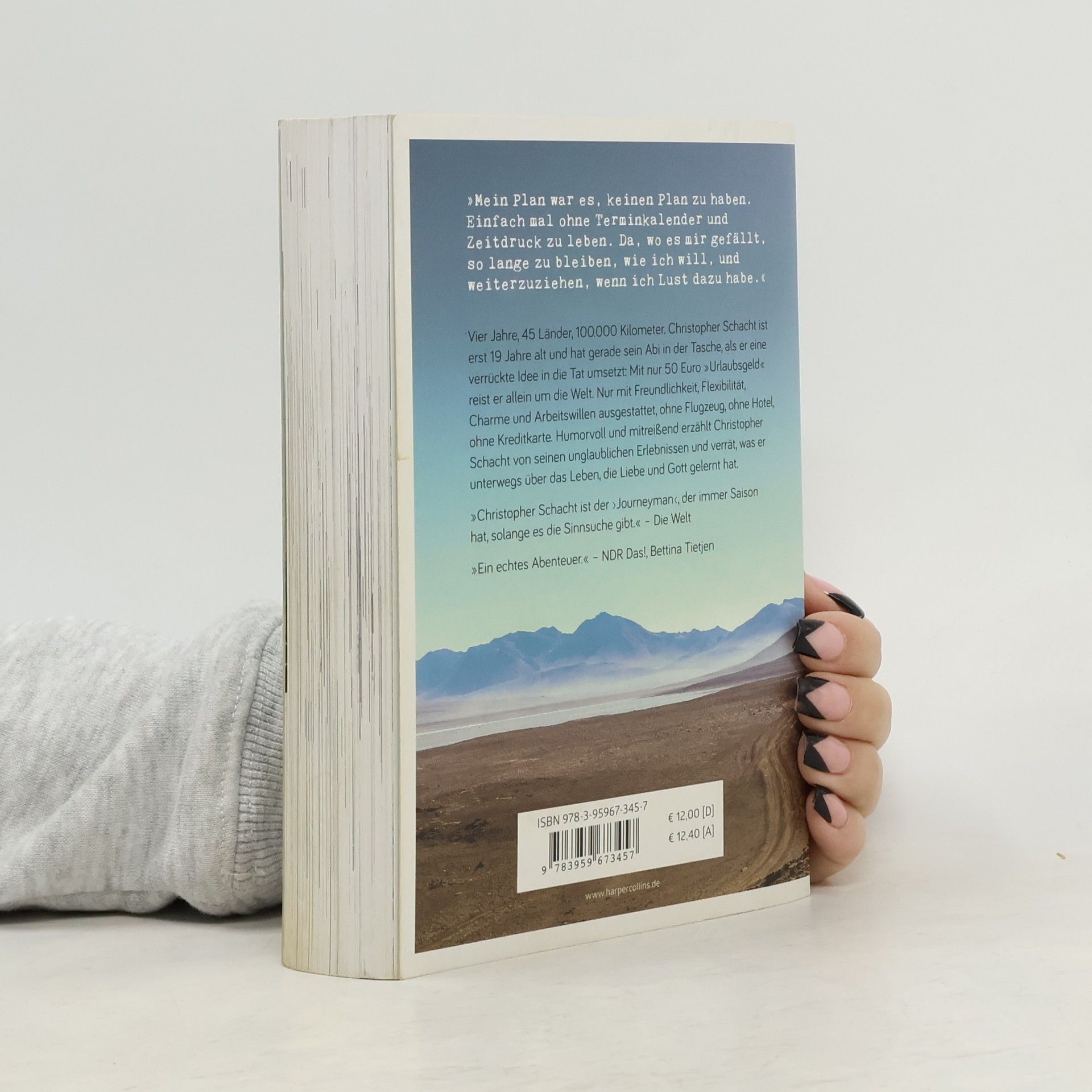 Vier Jahre, 45 Länder, 100.000 Kilometer - und ein Überraschungserfolg! Christopher Schacht ist erst 19 Jahre alt und hat gerade sein Abi in der Tasche, als er eine verrückte Idee in die Tat umsetzt: Mit nur 50 Euro »Urlaubsgeld« reist er allein um die Welt. Nur mit Freundlichkeit, Flexibilität, Charme und Arbeitswillen ausgestattet, ohne Flugzeug, ohne Hotel, ohne Kreditkarte. Humorvoll und mitreißend erzählt Christopher Schacht von seinen unglaublichen Erlebnissen und verrät, was er unterwegs über das Leben, die Liebe und Gott gelernt hat. Eine faszinierende Story, die Lust macht, Neues zu wagen und seine Träume zu leben! Ein echter Pageturner fürs nächste Reisegepäck. „Christopher Schacht ist der “Journeyman„, der [...] immer Saison hat, solange es die Sinnsuche gibt.“ Die Welt „Das Buch ist großartig!“ Sat.1-Frühstücksfernsehen „Ein echtes Abenteuer, zumal er erst 19 war, als er losgezogen ist, und 23 bei seiner Rückkehr.“ NDR Das!, Bettina Tietjen „Nach seinem Abitur wollte Christopher Schacht raus aus seinem Hamsterrad in Deutschland und etwas Neues erleben. Und ohne viel vorwegzunehmen: Das hat er geschafft!“ RTL Next