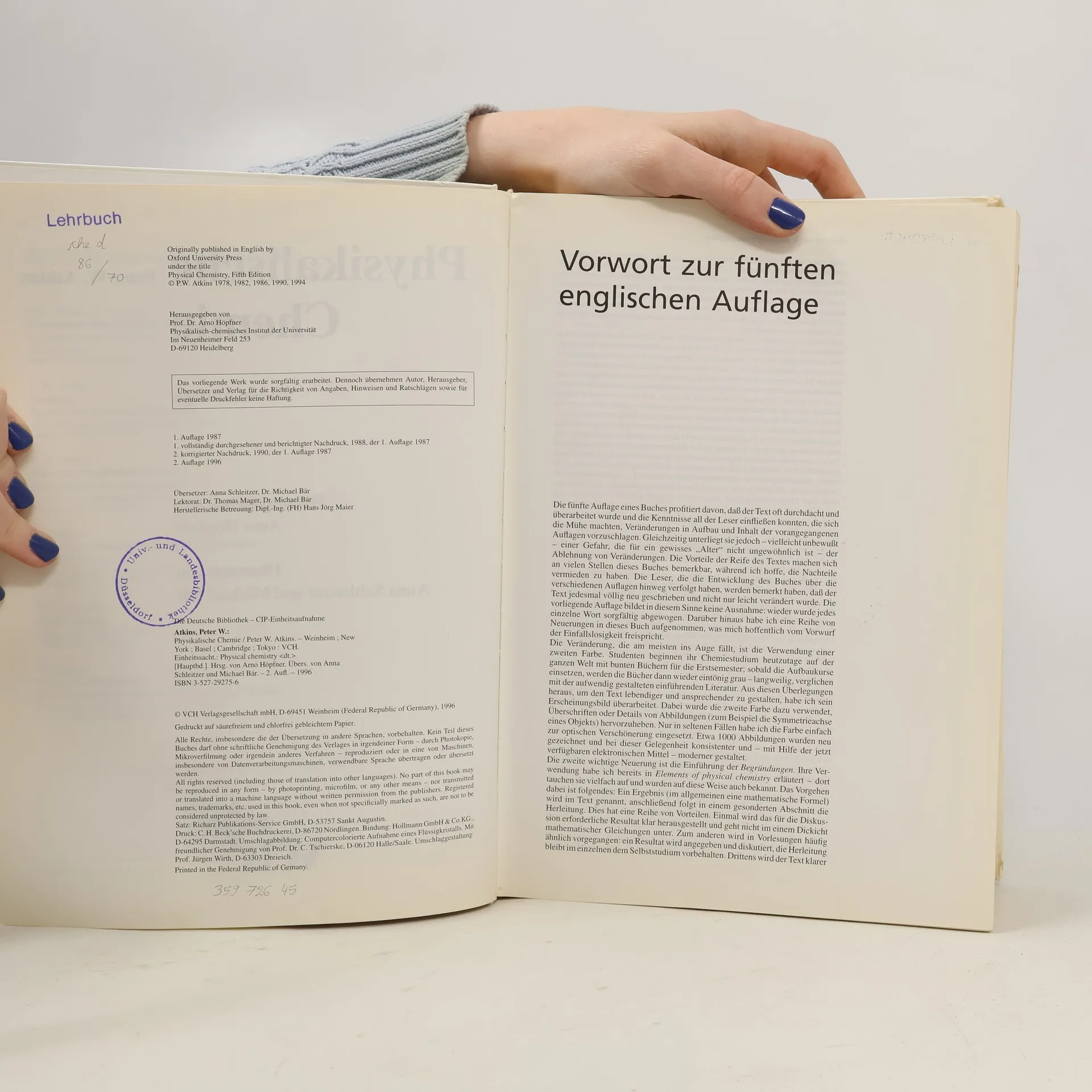 Endlich auch auf deutsch: die aktuelle 5. englische Auflage des meistverkauften Lehrbuchs der Physikalischen Chemie. Der Text wurde komplett überarbeitet und neu gestaltet, um ihn noch besser an die Bedürfnisse der Leser anzupassen. - Mehr als 1000 meist zweifarbige Abbildungen, wobei die zweite Farbe gezielt zur Hervorhebung wichtiger Sachverhalte eingesetzt wird - Mehr als 200 Beispiele mit ausführlichem Rechenweg - Mehr als 1200 Übungsaufgaben als Hilfe zur Prüfungsvorbereitung - Längere Herleitungen und Beweise sind in optisch abgesetzte 'Begründungen' verpackt und können beim ersten Lesen übergangen werden. Die hervorragende didaktische Aufbereitung des Themas und die klare, prägnante Sprache des erfahrenen Lehrbuchautors machen selbst komplizierte Sachverhalte verständlich. Dieses Buch ist ein Muß, nicht nur für Chemiker vor und nach dem Vordiplom, sondern auch für andere Naturwissenschaftler und Chemieingenieure.