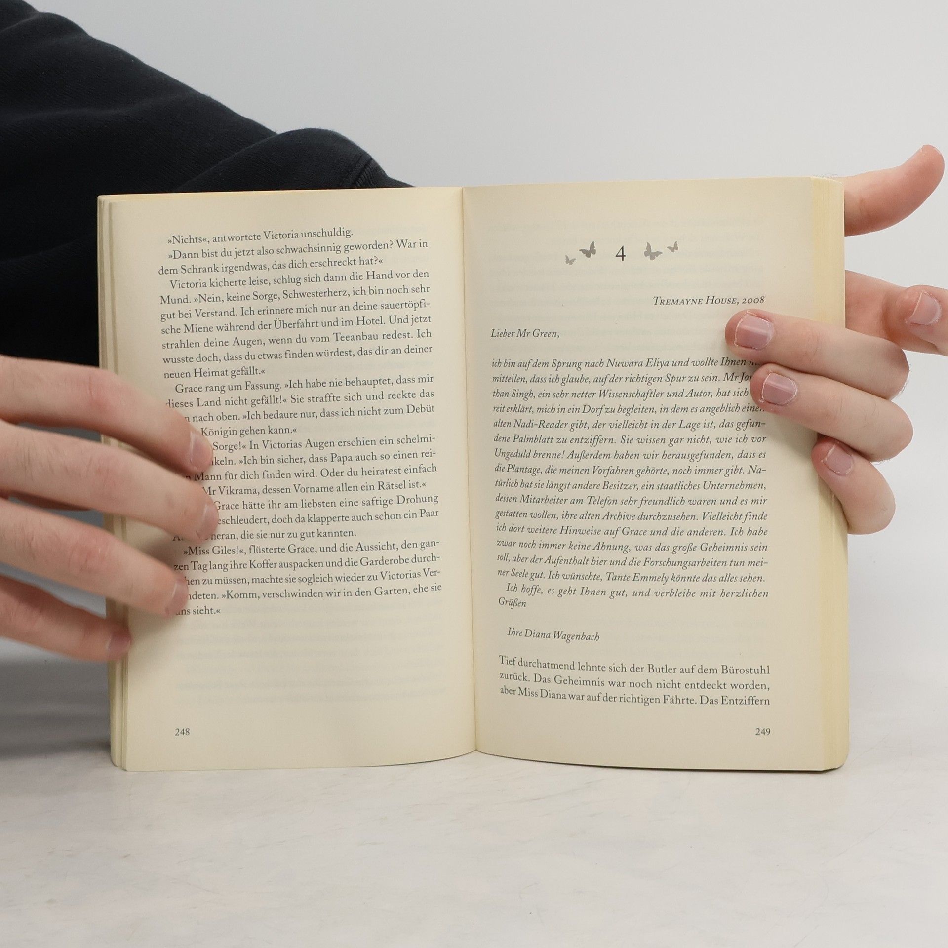 Als ihre Ehe zerbricht, steht die junge Berliner Anwältin Diana Wagenbach völlig allein da. Im Nachlass ihrer liebsten Tante findet sie das vergilbte Foto eines verwunschenen Hauses. Davor eine junge Frau. Ist es Dianas Ururgroßmutter, die einst in Ceylon lebte? Hals über Kopf macht Diana sich auf die Suche nach ihren Wurzeln in dem fremden Land am anderen Ende der Welt. Dort stößt sie auf eine geheimnisvolle Prophezeiung, die das Schicksal ihrer Familie für immer veränderte, eine verbotene Liebe, die niemals endete, und auf ihre eigene Bestimmung ...