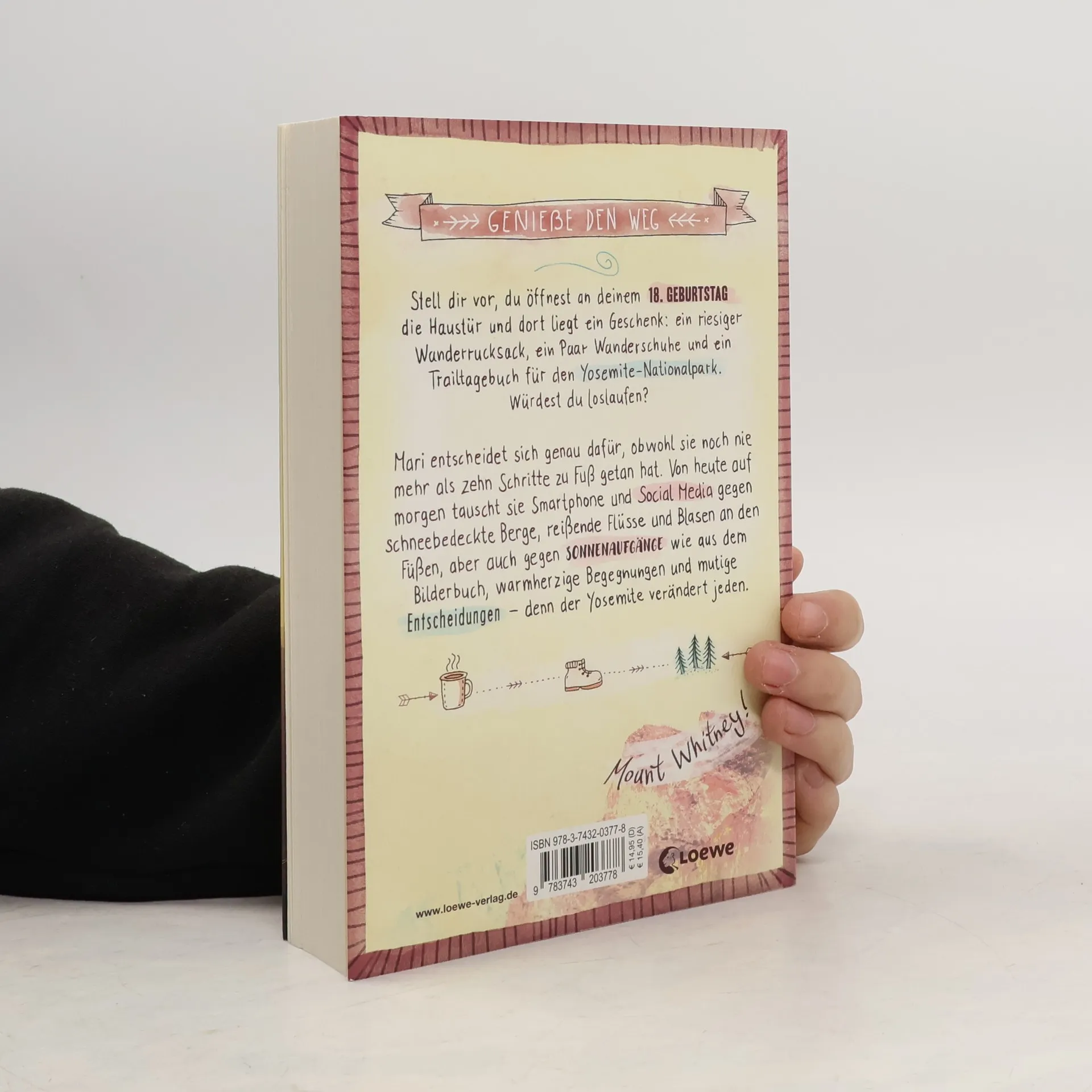 Das Buch ist bei deiner Buchhandlung vor Ort und bei vielen Online-Buchshops erhältlich! Stell dir vor, du öffnest an deinem 18. Geburtstag die Haustür und dort liegt ein Geschenk: ein riesiger Wanderrucksack, ein Paar Wanderschuhe und ein Trailtagebuch für den Yosemite Nationalpark. Würdest du loslaufen? Mari entscheidet sich genau dafür, obwohl sie noch nie mehr als zehn Schritte zu Fuß getan hat. Von heute auf morgen tauscht sie Smartphone und Social Media gegen schneebedeckte Berge, reißende Flüsse und Blasen an den Füßen, aber auch gegen Sonnenaufgänge wie aus dem Bilderbuch, warmherzige Begegnungen und mutige Entscheidungen – denn der Yosemite verändert jeden. Girl Online meets Der große Trip: Jessi Kirby s neuer Jugendroman ist eine kluge und emotionale Geschichte über ein Mädchen, das ihr Leben als erfolgreiche Influencerin gegen die raue Wildnis des Yosemite Nationalparks eintauscht – und dabei das Leben wieder lieben lernt.