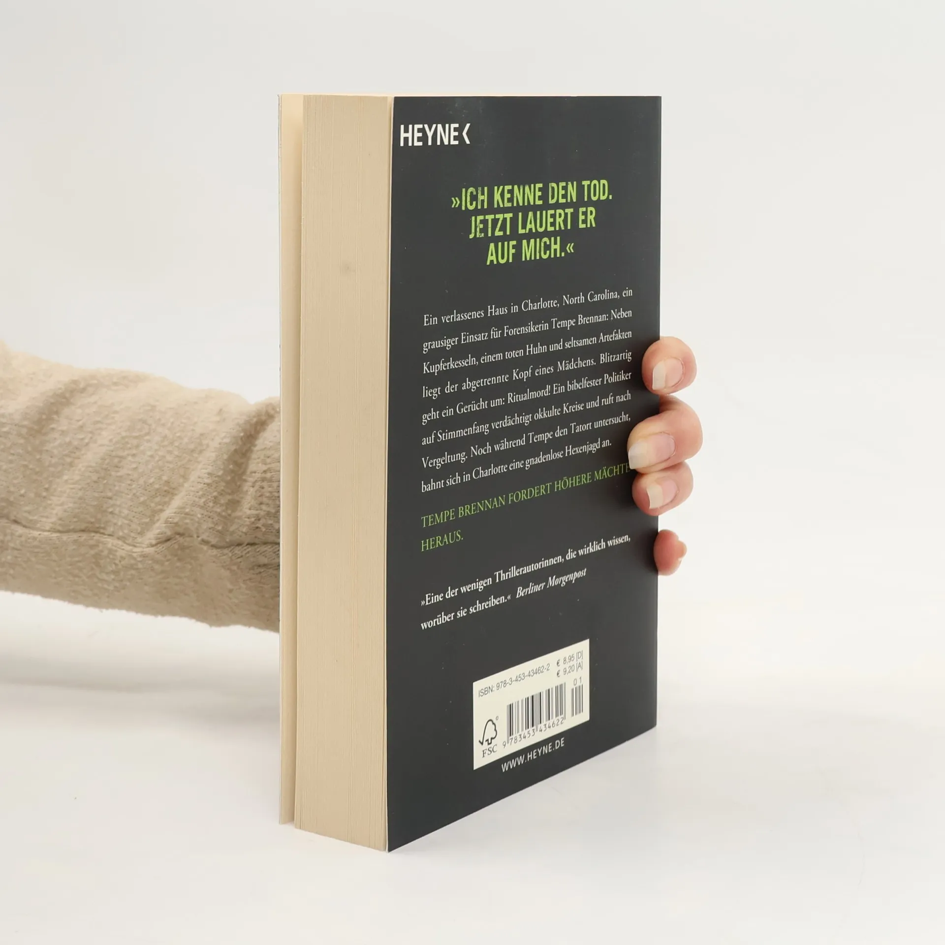 »Ich kenne den Tod. Jetzt lauert er auf mich.« Ein verlassenes Haus in Charlotte, North Carolina, ein grausiger Einsatz für Forensikerin Tempe Brennan: Neben Kupferkesseln, einem toten Huhn und seltsamen Artefakten liegt der abgetrennte Kopf eines Mädchens. Blitzartig geht ein Gerücht um: Ritualmord! Ein bibelfester Politiker auf Stimmenfang verdächtigt okkulte Kreise und ruft nach Vergeltung. Noch während Tempe den Tatort untersucht, bahnt sich in Charlotte eine gnadenlose Hexenjagd an.