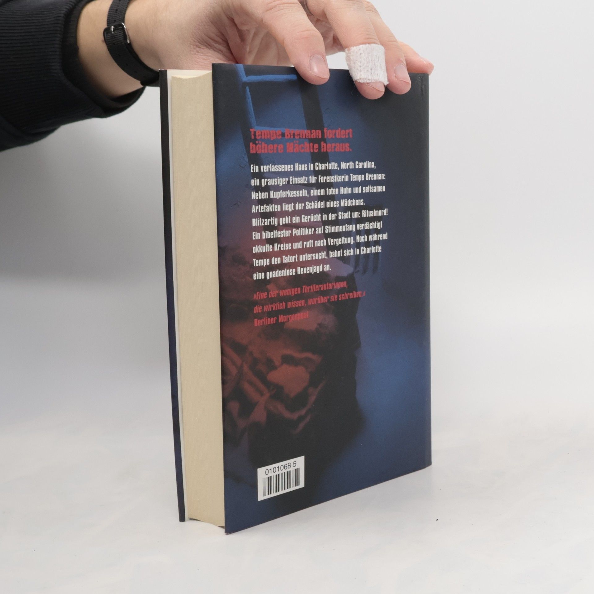 »Ich kenne den Tod. Jetzt lauert er auf mich.« Ein verlassenes Haus in Charlotte, North Carolina, ein grausiger Einsatz für Forensikerin Tempe Brennan: Neben Kupferkesseln, einem toten Huhn und seltsamen Artefakten liegt der abgetrennte Kopf eines Mädchens. Blitzartig geht ein Gerücht um: Ritualmord! Ein bibelfester Politiker auf Stimmenfang verdächtigt okkulte Kreise und ruft nach Vergeltung. Noch während Tempe den Tatort untersucht, bahnt sich in Charlotte eine gnadenlose Hexenjagd an.