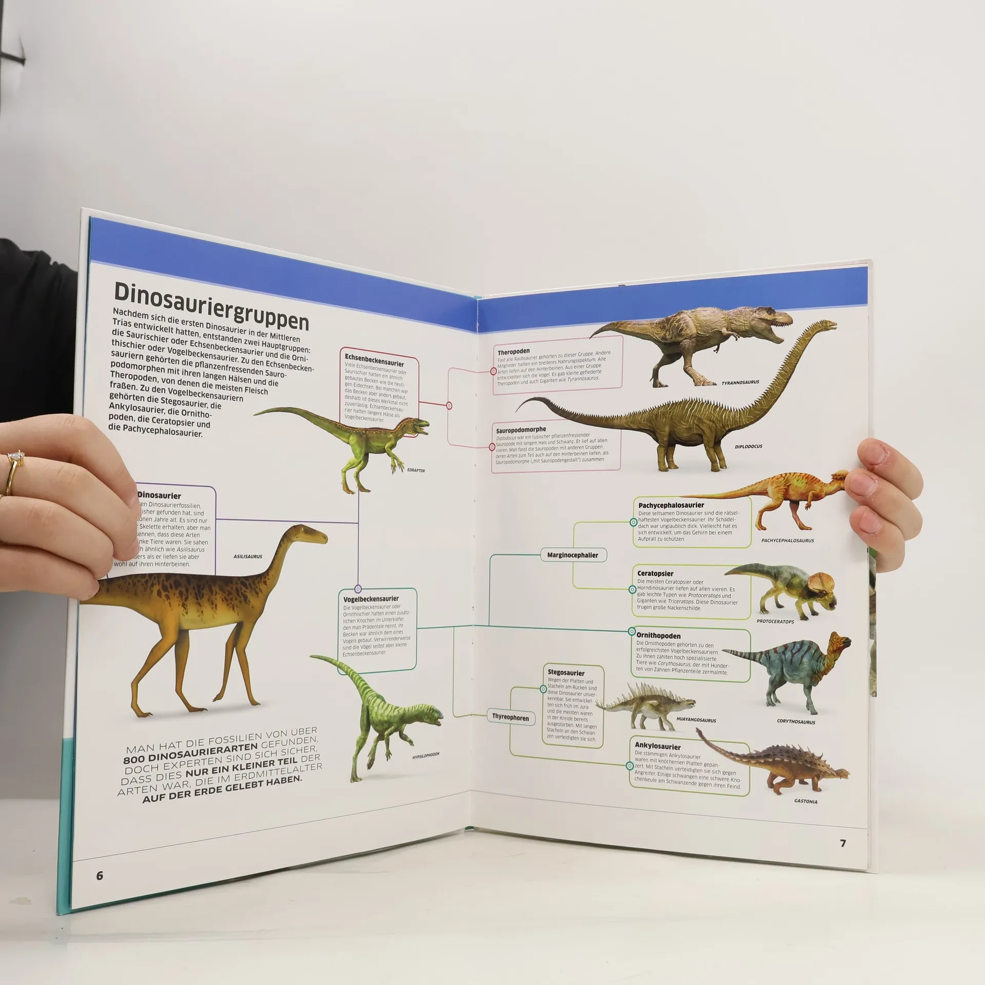 Die Dinos sind los! In diesem spannenden Sachbuch werden Fleisch- und Pflanzenfresser detailliert betrachtet, einschließlich anschaulicher Grafiken zur Arten-Klassifikation und einer praktischen Übersetzungstabelle für wissenschaftliche Sauriernamen. Die beliebte Kindersachbuchreihe memo Wissen entdecken bietet faszinierendes Wissen in kurzen, lesefreundlichen Texten und vielen detailreichen Bildern. Mit einem frischen, übersichtlichen Layout und einem illustrierten Chamäleon-Charakter, der durch das Buch führt und interessante Details erklärt, wird das Lernen zum Erlebnis. Zudem gibt es ein beidseitig bedrucktes Poster zum Aufhängen im Kinderzimmer – mit einem spektakulären Foto auf der einen und einer informativen Grafik auf der anderen Seite. Rubriken wie „Chronik“ oder „Neugierig geworden?“ vertiefen das Wissen, während ein Glossar am Ende des Buches einen klaren Überblick bietet. Hier wird großes Wissen in kleinen Häppchen vermittelt – mit Aha-Erlebnissen und Wow-Effekten auf jeder Seite! Von der beeindruckenden Anatomie über das Aussterben bis zu heutigen Fossilienfunden wird Know-how über Dinosaurier sachlich kompetent, leicht verständlich und unterhaltsam präsentiert. Ideal für junge Leser als Ergänzung zum Schulunterricht oder für Referate. Verfügbar bei Antolin.de.
