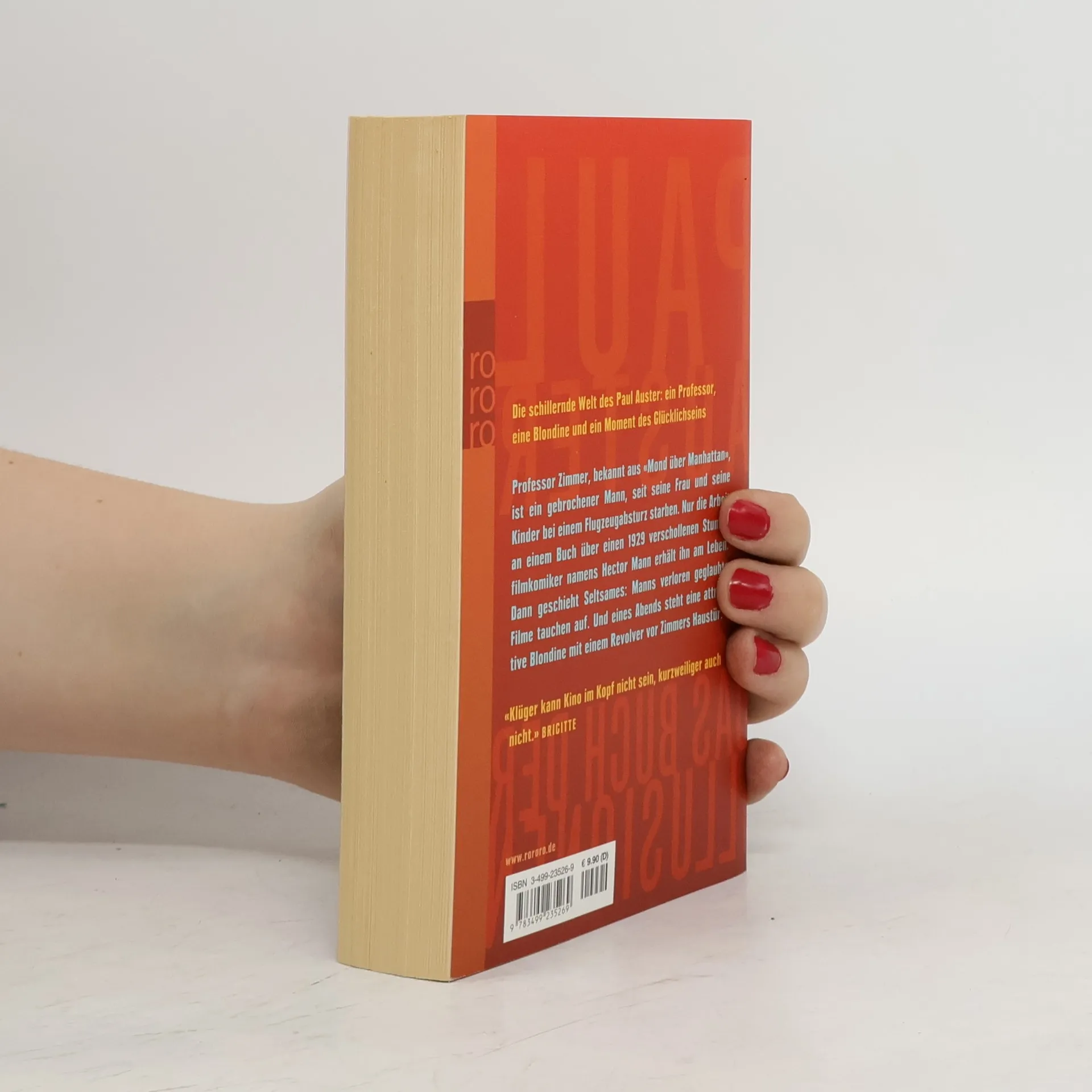 Die schillernde Welt des Paul Auster: Ein Professor, eine Brünette und ein Moment des Glücklichseins Professor Zimmer, bekannt aus “Mond über Manhattan”, ist ein gebrochener Mann, seit seine Frau und seine Kinder bei einem Flugzeugabsturz starben. Nur die Arbeit an einem Buch über einen 1929 verschollenen Stummfilmkomiker namens Hector Mann erhält ihn am Leben. Dann geschieht Seltsames: Manns verloren geglaubte Filme tauchen auf. Und eines Abends steht eine attraktive Blondine mit einem Revolver vor Zimmers Haustür.