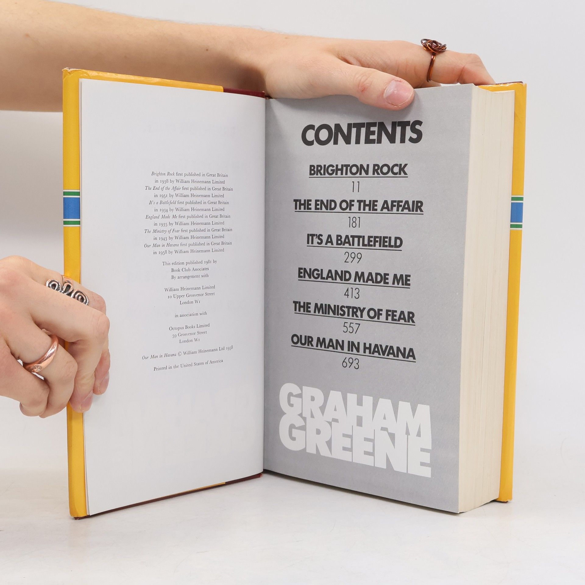 Our Man in Havana. The End of the Affair, It's a Battlefield, England Made Me, The Ministry of Fear, Brighton Rock, Graham Greene