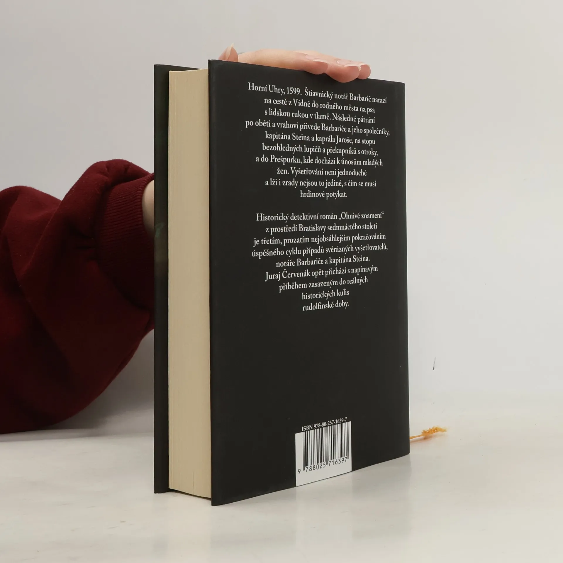 Ve třetím románu cyklu historických detektivek Juraje Červenáka ožívá dobová Bratislava. V napínavém příběhu se splétají místní strašidelné pověsti s historickými souvislostmi a působivě vykreslenou atmosférou města a jeho okolí. Nález lidských ostatků v podunajských lesích přivede Barbariče na stopu bezohledných lupičů a překupníků s otroky. Notář musí povolat na pomoc Steina a Jaroše. Společně putují do Prešpurku, který se po pádu Budína stal hlavním městem Uher. Zdánlivě jednoduchý případ se rychle zkomplikuje. Vyšetřovatelé musí zjistit, jak únosy mladých žen souvisí s odvěkým soupeřením měšťanů s hradní šlechtou, tajemnou sebevraždou bývalého rychtáře a hlavně běsněním přízraku, jehož oběti bývají nalezeny s ohavnými popáleninami. Poslední, co Prešpurk v předvečer voleb a velkého výročního jarmarku potřebuje, je rozsáhlé vražedné spiknutí…