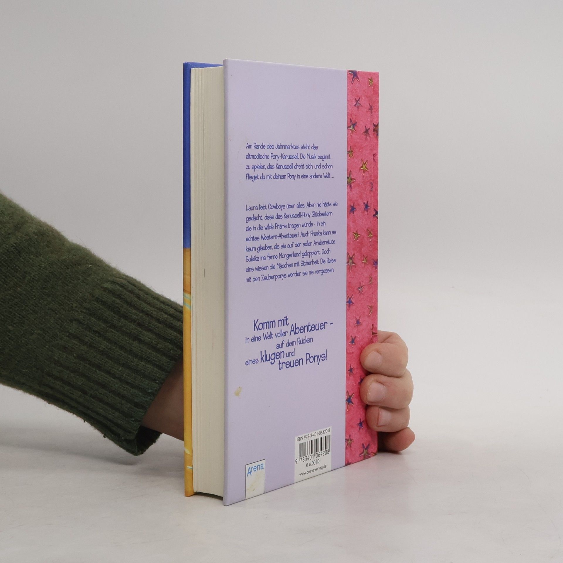 Laura liebt Ponys und Reiten über alles. Aber nie hätte sie gedacht, dass Glücksstern, das Karussell-Pony, sie in die wilde Prärie tragen würde - ein echter Abenteuer-Ritt! Auch Franka kann es kaum glauben, als sie auf der edlen Araberstute Suleika ins ferne Morgenland galoppiert. Doch eins wissen die Mädchen mit Sicherheit: Die Reise mit den Zauberponys werden sie nie vergessen. Enthält die Bände „Im Land der Wüstenpferde“ und „Im Galopp ins Abenteuer“