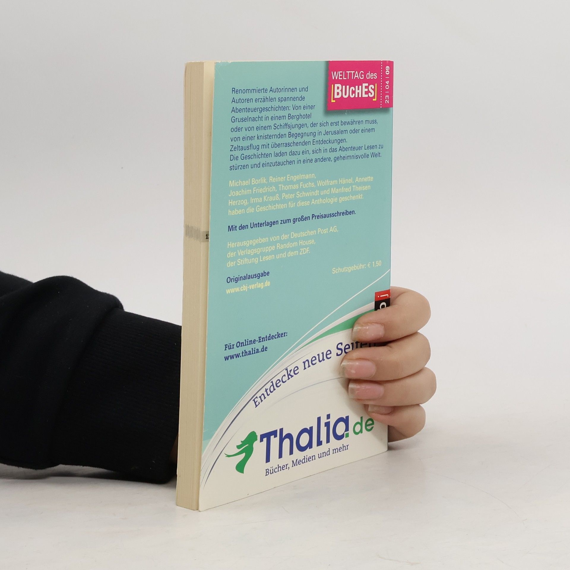 Welttag des Buches 2009. Die Geschichten laden dazu ein, sich in das Abenteuer Lesen zu stürzen und einzutauchen in eine andere, geheimnisvolle Welt. Mit Geschichten von: Michael Borlik, Reiner Engelmann, Joachim Friedrich, Thomas Fuchs, Wolfram Hänel, Annette Herzog, Irma Krauß, Peter Schwindt, Manfred Theisen