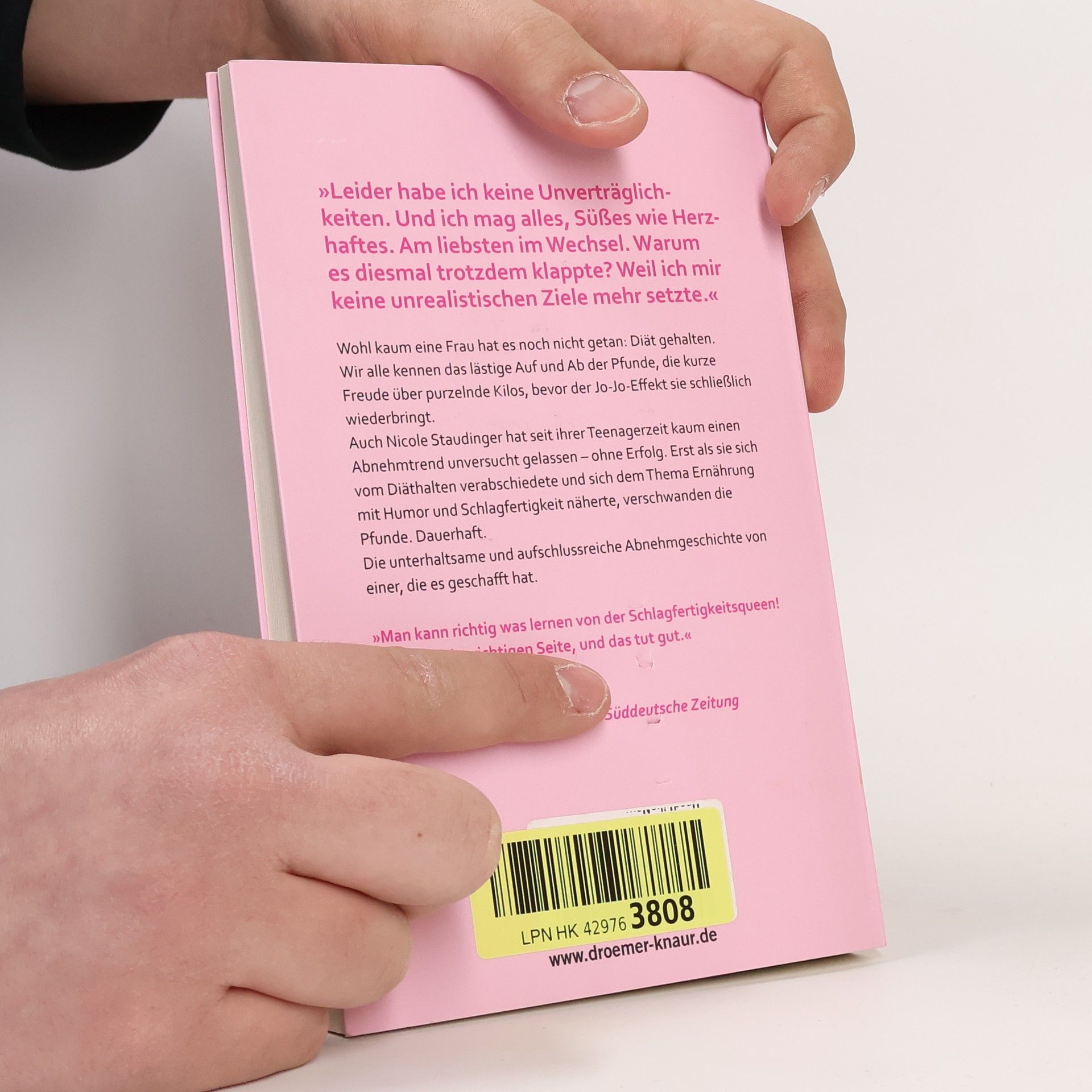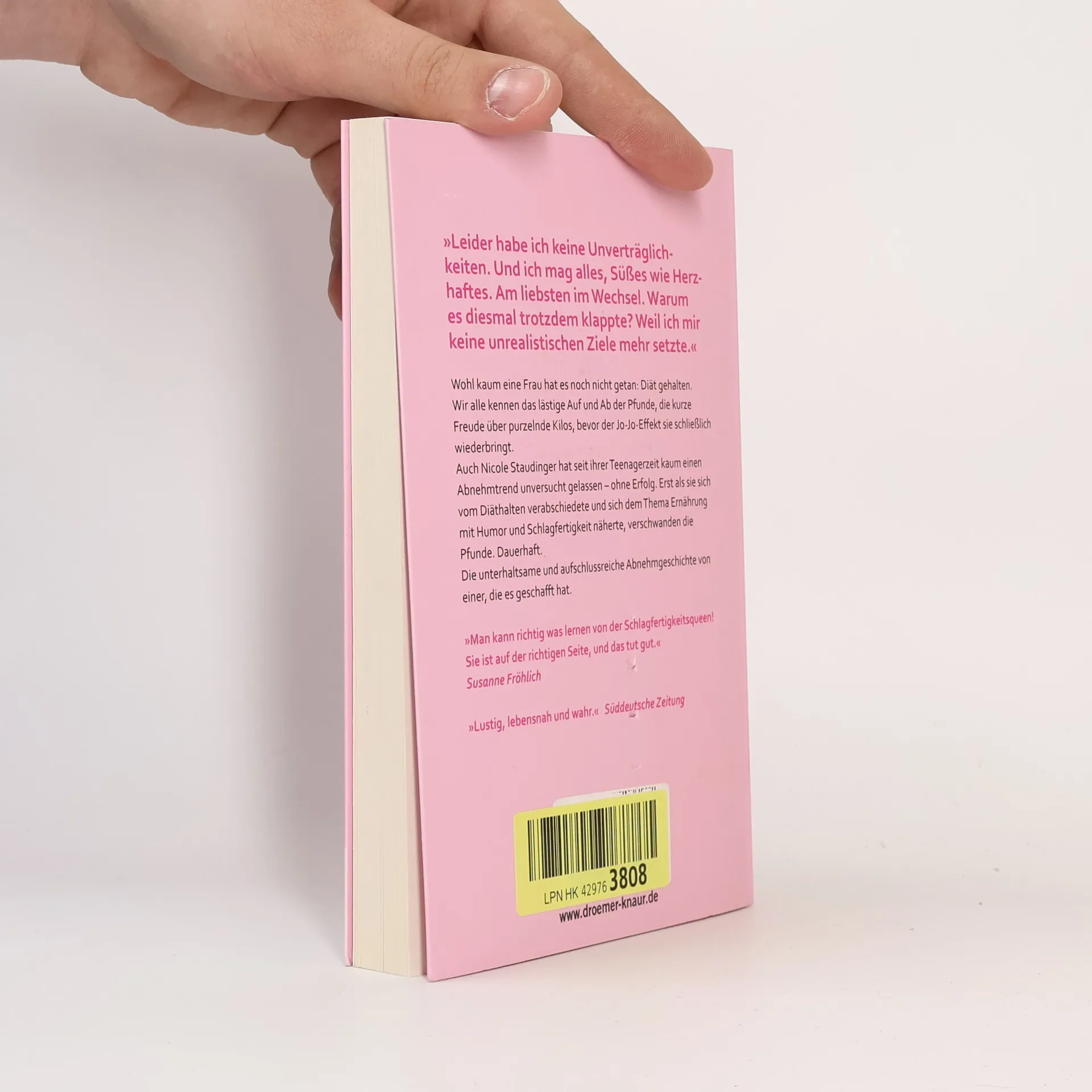 Der lustige und inspirierende Abnehm-Erfahrungsbericht von einer, die es geschafft hat. Diäten liegen schwer im Magen: Kalorienzählen, Genussverzicht und am Ende der Jo-Jo-Effekt, kaum eine Frau kennt nicht die Krux mit dem Abnehmen. Die Schlagfertigkeits-Queen Nicole Staudinger erzählt mit viel Witz und Selbstironie, wie ihr nach jahrzehntelangen Diät-Niederlagen endlich das Abnehmen gelang. Nicole Staudinger hat Jahre missglückter Diät-Versuche hinter sich. Kaum einen neuen Abnehm-Trend ließ sie unversucht - ohne Erfolg. Die Kilos, die sie verlor, brachte der Jo-Jo-Effekt zurück. Erst als sie erkannte, dass ihr Essverhalten das Problem war – eine Leckerei als Belohnung, als Trost oder einfach zwischendurch – gelang ihr das Abnehmen. Indem sie es sich nicht zum Ziel machte, ihr Gewicht zu reduzieren, sondern sich bewusst und ausgewogen zu ernähren, begannen die Pfunde auf einmal zu purzeln. Der Jo-Jo-Effekt blieb diesmal aus. Und nicht nur das: Ganz nebenbei fand sie zu mehr Energie, Wohlbefinden und Körperbewusstsein. In diesem Buch macht sie anderen Frauen auf gewohnt leichte und humorvolle Art Lust, den Genuss-Verzicht zu beenden und mit Humor und Selbstbewusstsein ein neues Körpergefühl zu entwickeln.