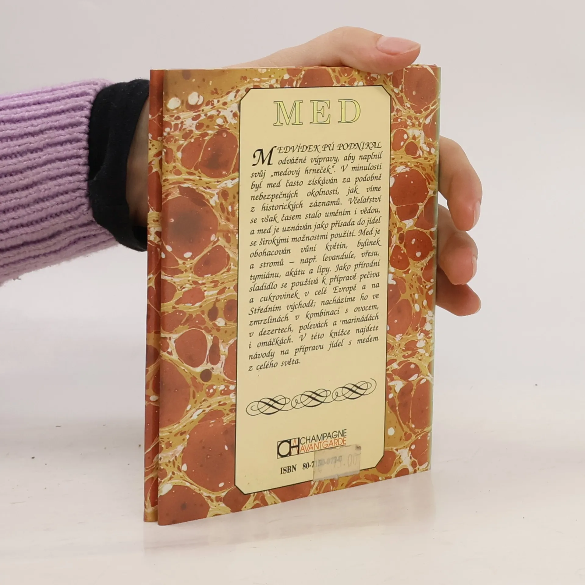 Autorka popisuje med, přírodní sladidlo z květů, bylin a stromů, druhy,medonosné rostliny, hmyz, použití v cukrářství a recepty