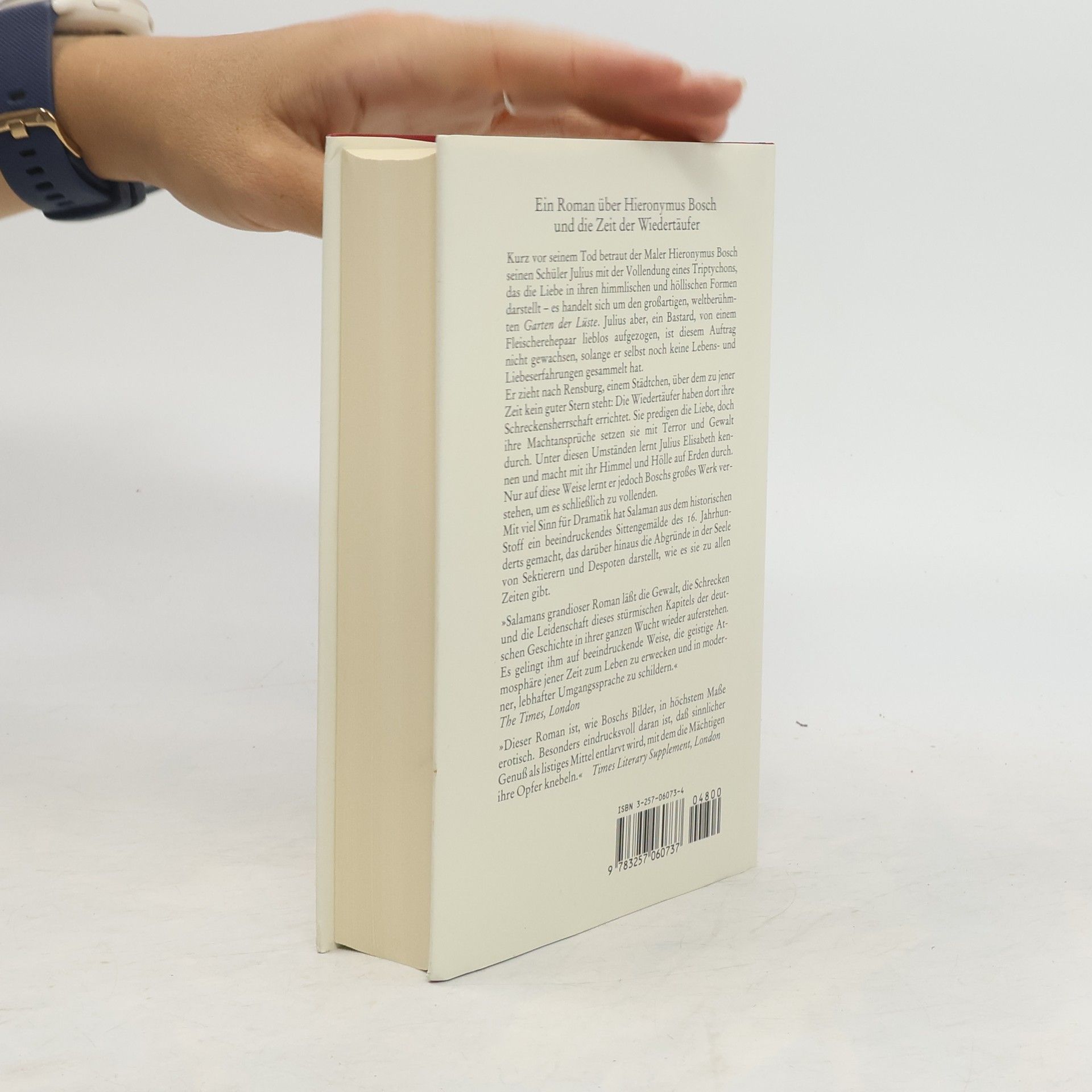 In einer deutschen Kleinstadt erlebt Julius, ein Schüler des Malers Hieronymus Bosch, die Schreckensherrschaft der Wiedertäufer, einer Glaubensgemeinschaft, die die Liebe predigt, aber mit Hilfe von Terror und Gewalt ihre Machtansprüche durchsetzen will. "Salamans grandioser Roman läßt die Gewalt, die Schrecken und die Leidenschaft dieses stürmischen Kapitels der deutschen Geschichte in ihrer ganzen Wucht wiederauferstehen. Es gelingt ihm auf beeindruckende Weise, die geistige Atmosphäre jener Zeit zum Leben zu erwecken und in moderner, lebhafter Umgangssprache zu schildern." (The Times, London.)