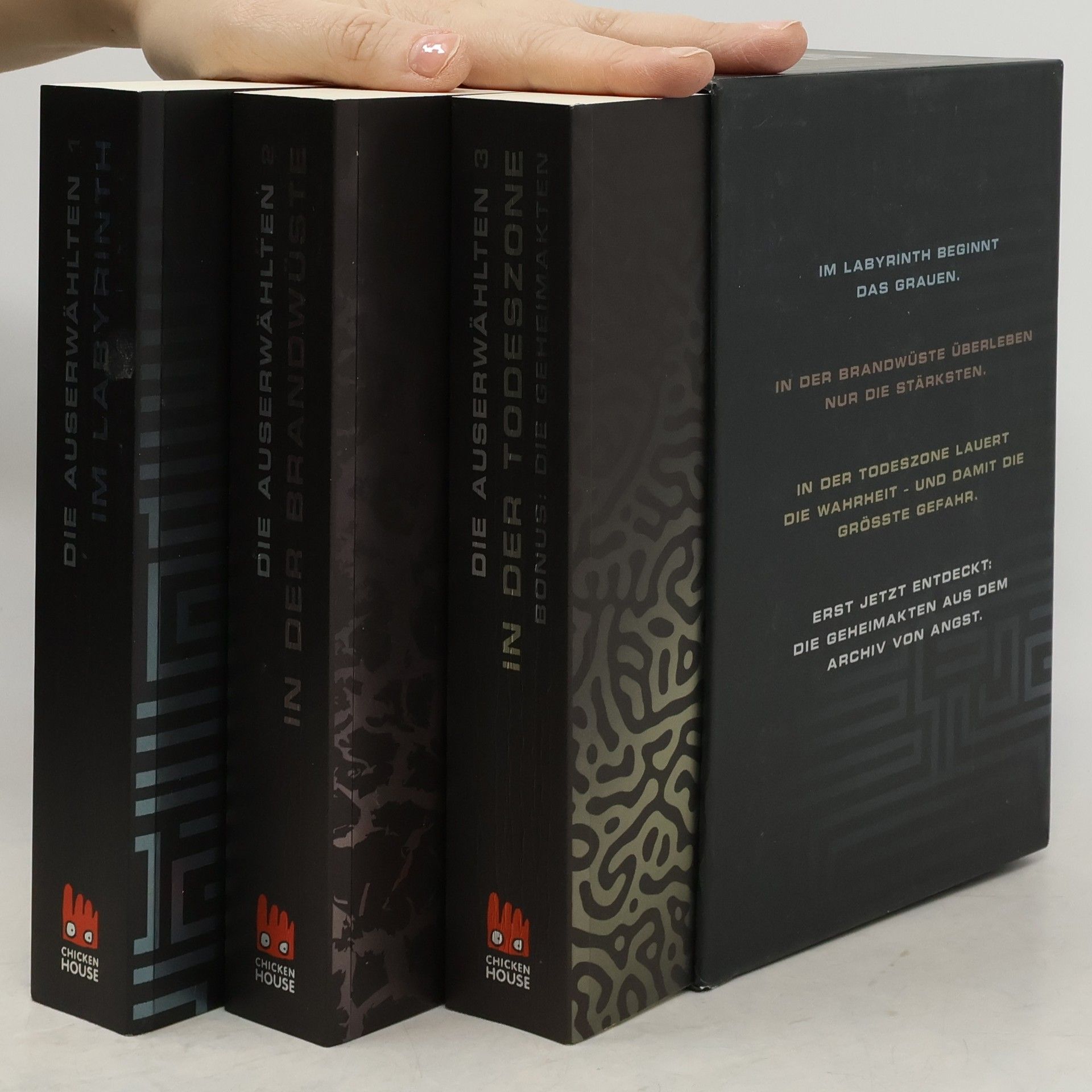 In dieser Buchreihe von James Dashner wird eine dystopische Welt dargestellt, in der Jugendliche in einem labyrinthartigen Komplex gefangen sind. Die Geschichte folgt Thomas, einem Jungen, der ohne Erinnerung in den Gladers, einer Gruppe von Jugendlichen, erwacht. Zusammen mit seinen Mitstreitern muss er die Geheimnisse des Labyrinths entschlüsseln und einen Ausweg finden. Die ersten drei Bände beleuchten Themen wie Freundschaft, Überleben, Identität und die Herausforderungen des Erwachsenwerdens in einer feindlichen Umgebung. Die Charaktere, darunter die mutige Teresa und der entschlossene Newt, entwickeln sich im Verlauf der Handlung weiter und stehen vor moralischen Dilemmata, die ihre Loyalität und ihren Mut auf die Probe stellen. Die Erzählung ist geprägt von Spannung und unerwarteten Wendungen, während die Protagonisten gegen äußere Bedrohungen und innere Konflikte kämpfen. Die Reihe thematisiert zudem die Auswirkungen von Macht und Kontrolle, sowie die Frage nach Menschlichkeit in extremen Situationen. Die Leser können sich auf eine packende und nachdenklich stimmende Lektüre freuen, die sowohl actionreiche Szenen als auch tiefere philosophische Fragestellungen bietet.